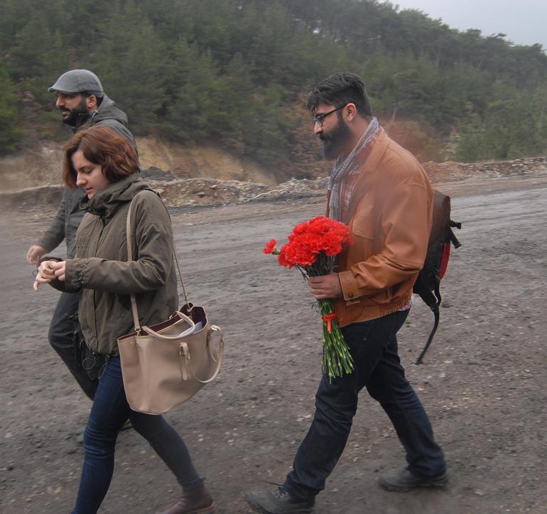 AVUKATLARDAN KIRMIZI KARANFİLBu arada ocağa ilk olarak mağdur ailelerin avukatları geldi. ÇHD Genel Başkanı AvukatSelçuk Kozağaçlı ve Sosyal Haklar Derneği Genel Başkanı Avukat Can Atalay başta olmak üzere, mağdur ailelerin avukatları maden sahası girişinde bir süre bekledi. Ardından, faciada yaşamlarını yitiren 301 madenci anısına ocak girişine bırakmak üzere getirdikleri kırmızı karanfillerle içeriye girdi.Avukatlardan sonra da, mahkeme heyeti bilirkişilerle birlikte ocağın bulunduğu alana jandarma eskortuyla geldi. Bu arada, kazadan sonra işsiz kalan bir grup madenci de, açıklama yapmak üzere ocağa geldi, ancak jandarma tarafından yaklaşık 20 kişilik grup uzaklaştırıldı.