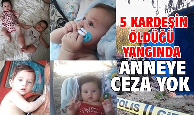 Cumhuriyet Mahallesi Tavşantepe mevkisinde tek katlı evde oturan, eşi Hakan Akcan bir suçtan dolayı cezaevinde bulunan ve ailesinin geçimini hurdacılık yaparak sağlayan Melisa Akcan, geçen yıl 11 Kasım'da saat 19.00 sıralarında 5 çocuğunu evde bırakıp, hurda toplamaya gitti. Bir süre sonra evde bulunan sobanın devrilmesi sonucu yangın çıktı. Alevler kısa sürede evi sararken, içeride bulunan Aras Bulut Akcan (1), Masal Işık Akcan (2), Aslan Miraç Akcan (3), Funda Peri Akcan (4) ve Fadime Nefes Akcan (5) kardeşler mahsur kaldı. Komşuların 112 Acil Çağrı Merkezi'ne ihbarıyla adrese itfaiye, polis ve sağlık ekipleri sevk edildi. Yangın ekiplerin müdahalesiyle söndürüldü.YAN YANA TOPRAĞA VERİLDİLEREvden çıkarılan 5 çocuktan 3'ünün zehirlenerek hayatını kaybettiği belirlendi. Yaralanan 2 çocuk da kaldırıldıkları hastanede kurtarılamadı. Yangınla ilgili yapılan ilk incelemede, kapının kilitli olduğu tespit edildi. Çocuklarını kaybetmenin acısı ile sinir krizi geçiren ve kaldırıldığı hastanede tedaviye alınan Melisa Akcan, taburcu olduktan sonra ifadesi için polis merkezine götürüldü. Adliyeye sevk edilen Melisa Akcan, adli kontrol şartıyla serbest bırakıldı. 5 kardeşin cenazeleri, bir gün sonra Acarlar Mezarlığı'nda yan yana toprağa verildi.İDDİANAME KABUL EDİLDİOlayın ardından başlatılan soruşturma tamamlandı. İddianamede; Sinem Melisa Akcan'ın çocuklarını uyutup elektrikli ısıtıcıyı açıp hurda toplamak için evden ayrıldığı belirtildi. Çocukların yaşları itibarıyla ısıtıcıyı devirebilecekleri ya da herhangi bir şekilde ısıtıcının devrilerek yangına yol açabileceği hayatın olağan akışına göre öngörülebilir olarak değerlendirilirken, Akcan'ın meydana gelen sonucu istemediği halde öngördüğünün kabulü gerektiğine vurgu yapıldı. İddianamede; şüphelinin, öz çocuklarının ölümünden sorumlu olduğuna yer verildi. Akcan hakkında 'Bilinçli taksirle birden fazla kişinin ölümüne sebep olma' suçundan 20 yıla kadar hapis cezası istemiyle iddianame hazırlandı. Akcan'ın ailevi durumun bakımından mağduriyet yaşadığı, bu nedenle de indirim hükümlerinin uygulanması talep edilerek iddianame mahkemeye sunuldu. İddianame Torbalı Ağır Ceza Mahkemesi tarafından kabul edildi.İLK KEZ HAKİM ÖNÜNDETutuksuz sanık Sinem Melisa Akcan, bugün ilk kez hakim karşısına çıktı. Torbalı Ağır Ceza Mahkemesi’nde görülen duruşmaya Akcan ile taraf avukatları katıldı. Duruşmada savunma yapan Akcan, olayın ardından psikolojik olarak zor günler geçirdiğini söyledi. Akcan, “Olay günü evden çıkarken çocuklar üşümesin diye elektrikli sobanın tek telini açtım. 20 dakika kadar dışarıda kaldım. 1 gün öncesinde hurdaları toplayıp evin arkasına bırakmıştım. Olay tarihinde hurdaları alıcıya götürdüm. 400 lira elden, 400 lirayı hesaptan aldım. Hızlı olsun diye paranın bir kısmını dahi elden almadım. Çocuklarımın ölümünden sonra psikiyatrik ve psikolojik tedavi aldım. Yaşamımı ilaçlarla sürdürüyorum" dedi.‘EVDEN ÇIKMASAM YİYECEK GETİREMEZDİM’Sobayı en küçük çocuğunun devirmiş olabileceğini belirten Akcan, “Soba daha önce devrilmemişti. Evden çıkmadan bütün çocuklarımı uyutmuştum. Evden çıkmasaydım eve yiyecek bir şeyler getiremeyecektim. En küçük olanın tam uyumadığını düşünüyorum. Hepsini uyuttum ancak o yarı uyur vaziyetteydi. Sobayı o devirmiş olabilir. Çocuklarım çok yaramazlardı. Birbirleriyle oynarken bir şeyleri devirirlerdi. Onları çok seviyordum. Başlarına böyle bir şey gelmesini istemezdim. Kesinlikle kötü bir niyetim veya dikkatsizliğim kaynaklanan bir durum yoktur. Sadece üşümesinler diye elektrik sobasını açtım. Zaten çocuklar hastalardı ve daha fazla üşütmelerini istemedim" ifadelerini kullandı.BABA ŞİKAYETÇİ OLMADISinem Melisa Akcan'ın ardından başka bir suçtan cezaevinde bulunan baba Hasan Akcan davaya SEGBİS ile katıldı. Eşinden şikayetçi olmayan Akcan, “Eşim kötü niyetle davranmamıştır. Çocuklara bakmaya, büyütmeye çalışıyordu. Şikayetim yoktur" dedi. Akcan’ın avukatı Cengiz Serttaş da müvekkilinin beraatini talep etti.Savunmaların ardından tüm delillerin toplandığını belirten iddia makamı esas hakkında mütalaasını sundu. Mütalaada sanık hakkında ‘Bilinçli taksirle birden fazla kişinin ölümüne sebep olma' suçundan 20 yıla kadar hapis cezası istenirken, indirim hükümlerinin uygulanması yönünde de görüş bildirildi.‘BİTTİM, YOK OLDUM’Esas hakkında mütalaaya ilişkin söz verilen sanık Akcan, “Çocuklarımın kokusunu düşününce aklıma toprak kokusu geliyor. Bittim, yok oldum" dedi.Savunmaların ardından karar açıklandı. Akcan'ın olayda bilinçli taksiri olmadığına karar veren heyet, Akcan’ın çocukların vefatıyla üzüntü duyduğuna ve ceza verilmesine yer olmadığına hükmetti. Heyet, Akcan’ın adli kontrol hükümlerini de kaldırdı. (DHA)