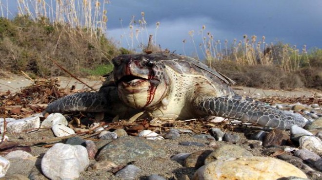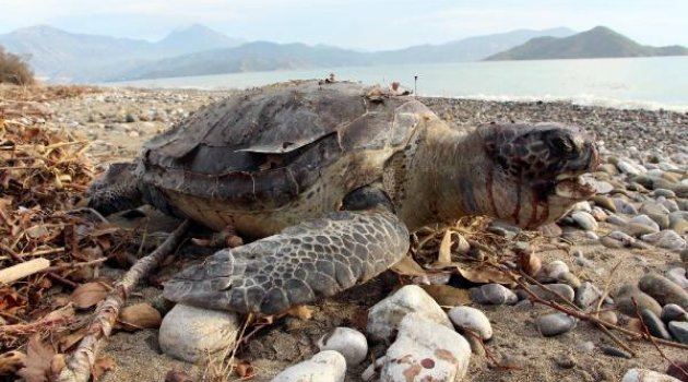 Fethiye Yanıklar Mahallesi'ndeki plajda gezintiye çıkan Murat- Lana Salttürk çifti, denize 3 metre mesafede ters dönmüş hareketsiz caretta caretta cinsi deniz kaplumbağası gördü. Yaklaşık 80 santimetre boyunda ve 50- 60 kilo ağırlığındaki kaplumbağayı çeviren çift, baş kısmında şişlik ve kanama olduğunu fark etti. Başına sert bir cisimle vurulması sonucuöldüğü belirlenen kaplumbağa, Fethiye Belediyesi ekipleri tarafından alındı. Olayın, Ortaca'daki Deniz Kaplumbağaları Araştırma Kurtarma ve Rehabilitasyon Merkezi'ne bildirildiği de kaydedildi.'BUNUN ADI CANİLİK'Plajda dolaşırken kaplumbağayı gören Murat Salttürk, yaz sezonunda yüzlerce deniz kaplumbağasının plaja gelerek yumurta bıraktığını söyledi. Geçen yıl da boynuna ve yüzgeçlerine ip bağlanmış bir kaplumbağanın aynı bölgede ölü halde sahile vurduğunu belirten Salttürk, "Bu sabah da kafasına darbe almış kan içinde bir hayvanın öldüğünü gördük. Korunması gereken canlılar bunlar. Bu hayvanın kimseye zararı yok. Bilinçli bir şekilde öldürülmüş. Bunun adı canilik" dedi.