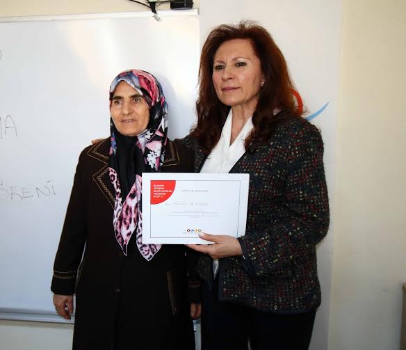 Bayraklı Nafiz Gürman Semt Merkezi’nde 2014-2015 eğitim-öğretim dönemi okuma yazma kursuna katılarak başarıyla bitiren 25 kadına diplomaları verildi. Diploma törenine birçok kadın çocuklarıyla birlikte katıldı. 2013’te Alaybey Tershanesi’nde yaşanan kazada şehit olan işçi Cafer Kırbaş’ın annesi Azime Kırbaş kursu başarıyla tamamlayanlar arasında yer aldı. Azime Anne bu dönem acısını yüreğine gömdü adı gibi azmetti, okuma-yazmayı öğrendi. Kurs katılım belgesini gönüllü AÇEV öğretmeni Serpil Giray’ın elinden aldı. Okuma yazma öğrenmek için geçtiğimiz eğitim öğretim döneminde kayıt yaptıran Kırbaş, oğlunun şehit olması nedeniyle derslere katılamamıştı.SURİYE’DE HEMŞİREYDİMezun olan bir diğer kursiyer ise Suriye’deki iç savaştan kaçarak İzmir’e yerleşen hemşire Zeva Ashad oldu. Üniversite mezunu olan Zeva Ashad AÇEV ve bayraklı belediyesi ortaklığında düzenlenen kursta okuma yazma öğrendi. Kısa sürede Türkçe üzerinde hakimiyet kuran Ashad kursu başarıyla bitirdi. Ashad, “Abimle birlikte Türkiye’ye geldik. Annem ve Babam Suriye’de kaldı. Orada Hemşireydim. Burada mesleğimi yapamıyorum, mesleğimi çok özledim. İlk zamanlar konuşmakta ve anlamakta güçlük çekiyordum. Şimdi konuşulanları anlıyor daha akıcı konuşuyorum” dedi.