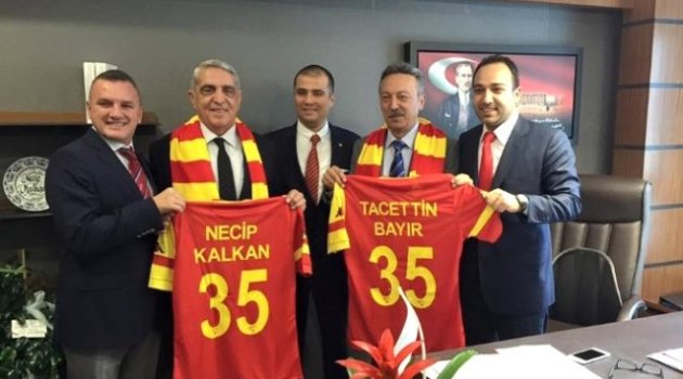 İzmir'in köklü futbol kulüplerinden Göztepe Spor, 1 Kasım Genel seçimlerinden sonra AK Parti İzmir Milletvekili olan necip kalkan ve CHP İzmir Milletvekili Tacettin Bayır'ı bir araya getirdi. Önce tek tek kulüp yöneticilerinin ziyaret ettiği vekiller daha sonra poz vermek için aynı anda kamera karşısına geçti. İzmir milletvekillerine, Göztepe kulübü adına hayırlı olsun dileklerini sunan yöneticiler Doğuş Bayır, Kaan Küçükağalar ve Ersel Akbeniz stadyum ve altyapı ile ilgili bilgi alışverişinde bulundu. 35 numaralı forma ve atkılarıyla fotoğraf çekilen milletvekilleri Kalkan ve Bayır, Göztepe kulübünü yakından izlediklerini belirtti.