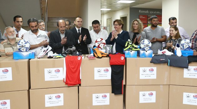 Konak Belediyesi 1'inci Amatör Küme'de mücadele eden Konak’ın 12 takımının sezon boyunca ihtiyacı olan tüm spor malzemelerini karşıladı.