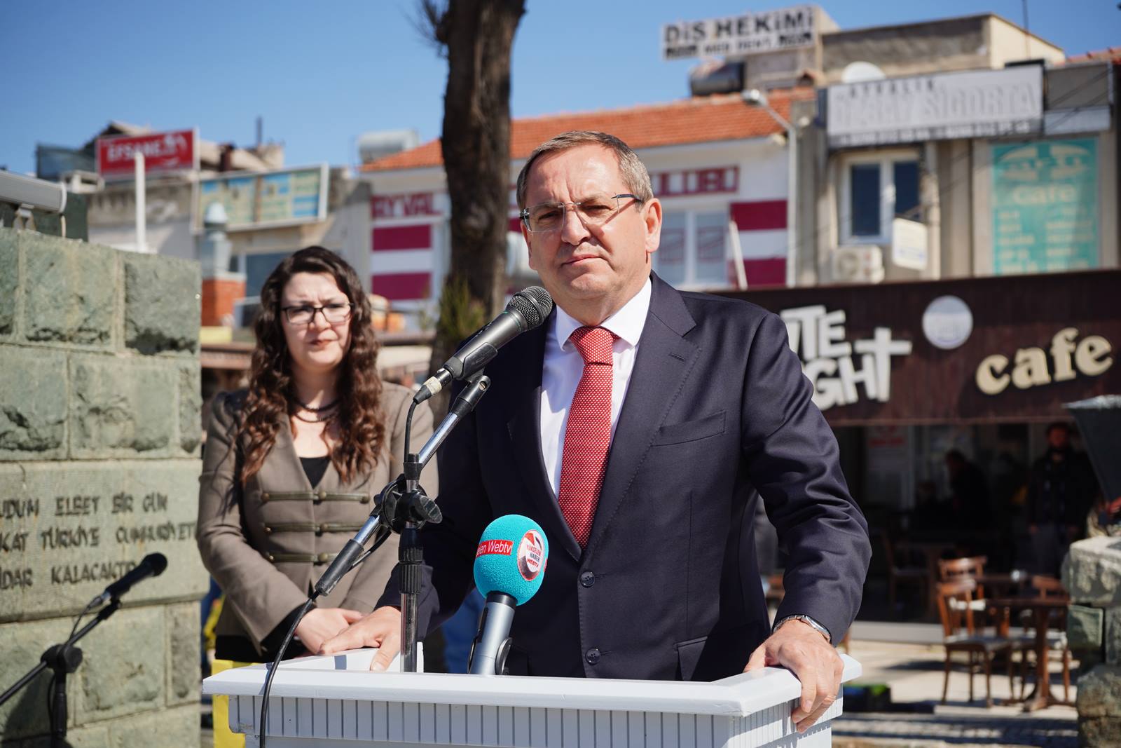 “Cumhuriyetin ilanından sonra Ulu Önder Mustafa Kemal Atatürk’ün, yurt gezilerine neden çıktığını, neden halkıyla bir araya gelmek istediğine bakıldığında, bunun altında yatan gerçek nedenin, yaşama geçirdiği devrimlerin amacına ulaşması için halkıyla bütünleşmesi gerektiğine olan inancının olduğunu görürüz. Bu nedenle Büyük Atatürk her fırsatta yurt gezilerine çıktı. Bu gezilerin Yeni Türkiye’nin oluşmasında ve devrimlerinin hayata geçirilmesinde büyük etkisi oldu. Gittiği yerlerde vatandaşlarla yakın temas kurmaya önem veren Atatürk, önemli tesislerin temel atma veya açılış törenlerine de katıldı. Atatürk, yanında Birinci Ordu Müfettişi Fahrettin Paşa ve İkinci Ordu Müfettişi İzzettin Paşa olduğu halde 13 Nisan Perşembe günü saat 18.00'de Ayvalık'a gelmiş, aynı gün saat 19.30'da ise Edremit'e hareket etmiştir. 88 yıl önce, bugün Ayvalık’ı ziyaret eden, kentimizi ve hemşehrilerimizi ziyaretiyle onurlandıran ve bizleri bugün o anlamlı ziyareti nedeniyle gururlandıran Ulu Önder Mustafa Kemal Atatürk’ün güzergâhından yürüyerek halkın karşısına gelmekten büyük bir mutluluk duyuyorum. 13 Nisan 1934 günü Atatürk Ayvalık’a 13 Nisan Caddesi’nin başlangıcına otomobiliyle yanaşmasıyla, Ayvalıklılar büyük bir sevinç yumağı oluşturmuş ve Ata’nın etrafını sarmış. Ayvalıklılar coşkuyla caddeye yol boyunca ulu önderin yürümesi için bir kırmızı halı sermişse de kırmızı halıyı gören Atatürk hemen emir vererek halıyı kaldırmış ve halkın yanında saf tutarak yürümeyi tercih etmiştir. Yol boyunca Ayvalıklılar ile yürüyen Atatürk onlarla Belediye binasına kadar sohbet etmiştir. Tabii ki bu esnada, Atatürk’ü görebilmenin, bitip giden bir ulusu ayağı kaldıran bir büyük lidere yakın olabilmenin büyük coşkusu Ayvalık’ın dört bir yanında hissedilmişti. Bir milleti küllerinden var eden, ülkemizin batıdaki bu nadide ilçesi Ayvalığımızı ziyaret eden Atatürk, kırmızı halıyı ve protokolü bir kenara atarak halkıyla bütünleşmiştir. Örnek almamız gereken bu hassasiyet ve birliktelikle Türkiye Cumhuriyeti’nin, kurulduktan sonraki kısa zamanda kat ettiği mesafenin asıl sebebidir. Bizler de görevimiz süresince daha güzel bir Ayvalık için, daha da iyiye erişmeye çalışıyoruz ve bunu değerli Ayvalık halkıyla aynı yolda bütünleşerek ve el ele vererek yapacağımıza inancımız tamdır. Bu anlamda tek örnek aldığımız lider 88 yıl önce kentimize adımını atan, bizlere bugünde aynı gururu yaşatan Mustafa Kemal Atatürk’tür. Onun direncidir, çalışkanlığıdır, vatan sevgisidir. Bizim gibi kenti için gecesini gündüzüne katan yerel yöneticilere, ülkesi adına emek verenlere düşen görev de bize bu duyguyu yaşatan Ulu Önder Gazi Mustafa Kemal Atatürk’ü örnek almak olmalıdır. Ayvalık halkı sonsuza kadar Atasına bağlı kalacak, onun izinde yürüyecek ve onun kentimizi şereflendirdiği 13 Nisanları da en güzel günü olarak anmaya devam edecektir. Atatürk'ün hangi kenti ziyaret ettiğinden çok, aslında hangi kentin Atatürk'ün izinden gittiği önemlidir..." Ayvalık, Ayvalık halkı, Ayvalıklılar, bu kentte yaşayanlar daima Atatürk'ün izinden/yolundan gitmiştir, bugün de yarın da gitmeye devam edecektir. Her 13 Nisan’da olduğu gibi, Bugün de bize aynı heyecanı ve sevinci yaşatan, Ulu önder Mustafa Kemal Atatürk’e, bu ziyaretinde ona eşlik eden Birinci Ordu Müfettişi Fahrettin Paşa ve İkinci Ordu Müfettişi İzzettin Paşa ile Kurtuluş destanını yazan, Kurtuluşu devrimleri ile taçlandıran, Cumhuriyet ruhunu ve ateşini Anadolu’nun her yanına taşıyan Kuvayı Milliye Kahramanları: Milli Mücadelede ilk kurşunun kenti Ayvalığımıza iyi ki gelmişsiniz, hoş gelmişsiniz.”