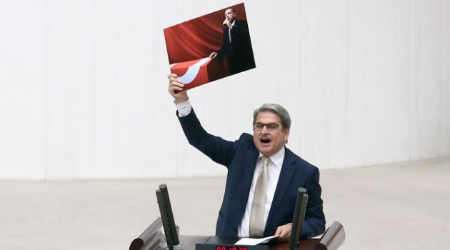 TBMM Genel Kurulu’ndan görüşülen ve kabul edilen tezkere oylamalarına CHP İzmir Milletvekili Aytun Çıray’ın konuşması sırasında gösterdiği Erdoğan fotoğrafı damga vurdu. CHP’li Çıray, Cumhurbaşkanı Erdoğan’ın şehit cenazesinde, şehidin fotoğrafına elini koyarak konuşma yaptığı fotoğrafı göstererek, “bu fotoğraf, erken seçim kampanyasının habis bir istismarıdır. Elini şehit tabutunun üstüne koymuş olan bu kibirli şahsın fotoğrafına bakın. Bu kibirli şahsın fotoğrafına bakın. Ama iyi ki hafıza var” dedi. AKP’li milletvekilleri sert tepki gösterdi. Genel Kurul Salonu’nda tansiyon yükseldi.Meclis Başkanvekili Koray Aydın, “Sayın idare amirleri milletvekili arkadaşlarımızın yerine oturmasını temin edelim. Herkes yerini otursun” diye konuştu. AKP’li vekiller de “Sözünü geri alsın” diye seslendi. Çıray, “Sorarım size şehitlere kelle diyen kim?” diyerek konuşmasına devam etti. ‘Başkomutan’a saygısızlık yapıyorsun’ sözleriyle CHP’li vekile tepki gösteren AKP’liler yerlerine oturmayınca Meclis Başkanvekili Koray Aydın, Genel Kurul’a 40 dakikalık yemek arası verdi.(sözcü)İşte o fotoğraf