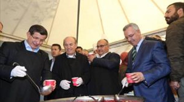 Başbakan Ahmet Davutoğlu, İstanbul Madeni Eşya Sanatkarları Sanayi Sitesi (İMES) Camiinde vatandaşlara aşure dağıttı.