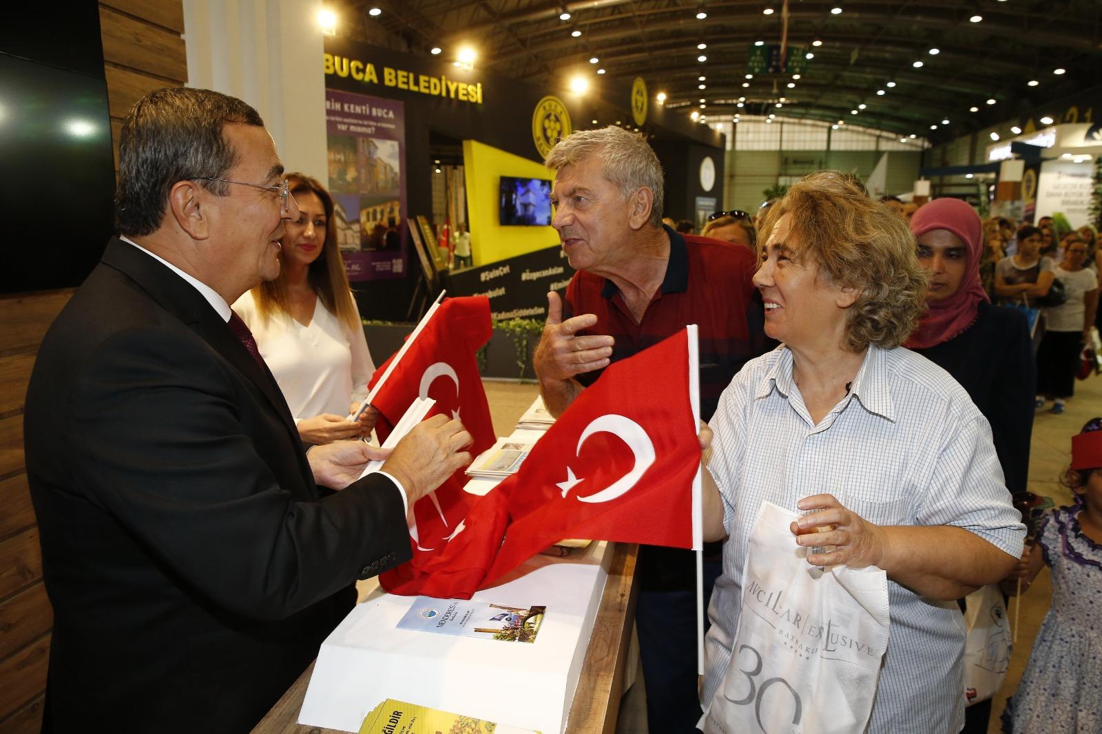 Zafer coşkusunu şehrin her noktasında bir araya geldiği hemşehrileriyle paylaşmaktan büyük bir mutluluk duyduğunu söyleyen Başkan Batur, 9 Eylül tarihinin Konak için özel bir anlam taşıdığını vurguladı. Konak’ın işgal edildiği gün Milli Mücadele’yi ateşlediğini, işgal sonlandırıldığında bir ulusun bağımsızlığını da ilan ettiğine dikkat çeken Batur, “Düşman askerine ilk kuruşunu atarak bir ulusun direnişini ateşleyen Hasan Tahsin ve daha nice kahramanı bağrında taşıyan Konak, bir memleketin zafere kavuştuğu şehirdir. 9 Eylül’de şehre giren süvarileri kendi diktiği bayrakla karşılayan, cesur insanların yaşadığı yerdir. Bizim memleket sevdası taşıyan rüzgârımızda şanlı bayrağımız bir başka dalgalanır. Bugün burada, standımızı ziyaret eden hemşehrilerime bayrağımızı hediye etmekten, bu nedenle ayrı bir gurur duyuyorum. 9 Eylül tarihimize yazılı önemli bir gün değildir sadece; yeniden var oluşumuzun ve özgürlüğümüzün türküsüdür. İşte biz o türküyü sonsuza kadar söylemeye devam edeceğiz” diye konuştu.