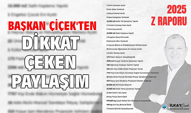 Başkan Çiçek'in paylaşımında yaptığı hizmetleri "2025 Z Raporu" olarak verdiği gözlendi.