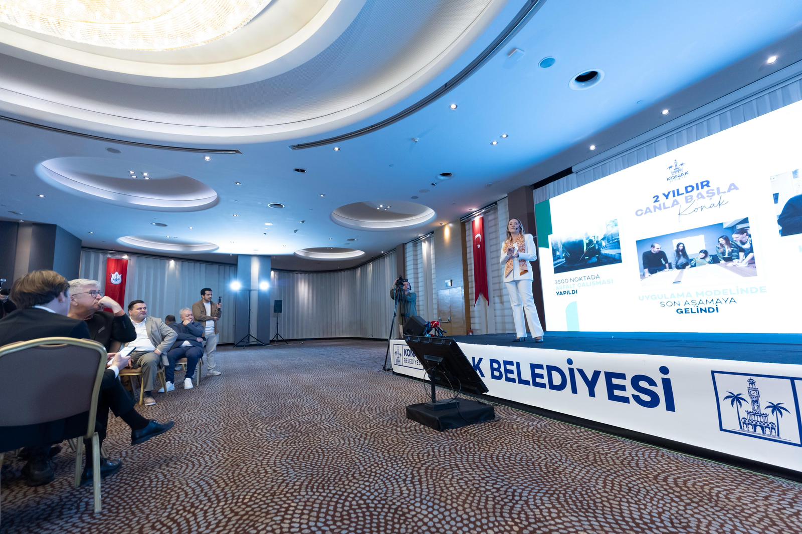 Park yapılamayan mahalleler için okul bahçelerini düzenleme formülüKonak’taki yapılaşma nedeniyle park alanı bulunmayan mahallelerde okul bahçelerinde oyun ve park alanı oluşturma yoluyla çözüm ürettiklerine dikkat çeken Başkan Mutlu, “Okullarda yenileme çalışmaları yapıyoruz. Aslında ağırlıklı olarak Milli Eğitim Müdürlüğünü görevi ama biz de özellikle ‘Nerelere park yapabiliriz’ diye planları önümüze açtığımızda bazı sokaklarda kentsel dönüşüm tamamlanmadan çocuk parkı yapacak alanımızın olmadığını gördük. Buralarda ne yapabiliriz, dedik ve hızlıca Milli Eğitim Müdürlüğüyle görüşüp okul bahçelerini parka dönüştürme yolunu seçtik. Birçok yerde okul bahçelerinde park ve spor alanları yaratarak oradaki çocuklarımıza ulaştık. Arama Kurtarma Timimiz var. Bir mimar olarak yıllarca savunduğum görüş, kimsenin burnu kanamadan afetlerden çıkılmasının sağlanması; arama kurtarmaya da ihtiyaç olmadan bir afeti atlatabilmek. Ama maalesef ülke gerçeğimiz öyle olmadığı için bir yandan arama kurtarma çalışmalarımız devam ediyor” ifadelerini kullandı. “Gelişmiş atık yönetimini Konak’ta hayata geçirmeye çalışıyoruz”Temizlik ve atık yönetimi çalışmalarını da detaylandıran Başkan Mutlu, İzmir Büyükşehir Belediyesi’yle moloz döküm alanlarıyla ilgili bir çalışma yaptıklarını aktardı ve konuşmasına şu cümlelerle devam etti: “Eskimiş bir araç filomuz var. Şu ana kadar 13 çöp aracımız, 2 çöp taksimiz ve 5 tane elektrikli süpürgemiz hayata geçti; daha da artacak. Bu dönem, kentin en önemli sorunlarından biri, temizlik. Her sabah uyandığımızda konteynerin yanında ya da bir köşe başında bir koltuk takımıyla, yatakla, döşekle karşılaşıyoruz. Bu sadece bir temizlik problemi değil sosyolojik sorun da. Buna neden olanların başında hurdacıların olduğunu düşünerek mücadele ediyoruz. Ruhsatsız hurdacıları kapatıyoruz. Emniyet Müdürlüğüyle iş birliği içerisindeyiz, adliyeden destek istiyoruz. Ama bozulan ekonomide iş kolu gibi görünen hurdacılık şu an bütün kentin estetiğini, hijyenini, temizliğini alt üst ediyor. Temizlik projesinde kadınların görünür olmasını istedik ve ne işte ne eğitimde olan, lise mezunu, 25 yaş altı genç kadınları süpürgeci olarak istihdam ettik. Gerçekten hem kentte bir moral oldu. Sabah işe giderken yolda, genç, eğitimli kadınların çalıştığını görmek herkese bunun onurlu, gururlu bir iş olduğunu hatırlattı ve kadın emeğini görünür kıldı. Çöp konteynerlerimizi sık sık değiştiriyoruz. Gelişmiş atık yönetimini Konak’ta hayata geçirmeye çalışıyoruz. 2026 yılına yakışan bir atık yönetim planını gerçekleştirmek için çalışıyoruz.”“Konak’ta başkanlık yapmak benim için çok gurur verici”Başkan Mutlu, Konak’ın tarihini günümüzle buluşturan çalışmaları ise şöyle aktardı: “Konak’ta başkanlık yapmak benim için çok gurur verici. Çünkü öyle bir ilçe ki Agora, Kadifekale, Kemeraltı burada. Filmlere konu olan Kordon’da gün batımı burada. Her bir köşesi insana iyi ki Konak’ta yaşıyorum, dedirten mekanlar. Bu geçmiş, bu tarihi öne çıkarmak, kentliyle buluşturmak istedik. Kültürel Miras Müdürlüğümüz kurduk. Bu kapsamda 300 yıllık bir hamamı sanat galerisine dönüştürdük. Basmane’de kömür deposu olarak kullanılıyordu. Şimdi, çok yoğun ziyaret ediliyor; Kıllıoğlu Hamamı. Hem çağdaş bir restorasyon örneği oldu. Hem içinde sergilenen modern sanat eserleriyle eski bir mekanın dönüşümü nasıl olur, nasıl modern bir fonksiyona kavuşur ona örnek oldu. Kültürel Miras Koruma Müdürlüğümüzle sürekli Konak gezileri düzenliyoruz. Farklı rotalar oluşturduk ve dijitale yükledik. İzmir’de yaşayan ya da yaşamayan herkese Konak’ın tarihi ve kültürel zenginliklerini tanıtmak istiyoruz. Şu ana kadar 100 ayrı gezi yaptık. Kültürel mirasımızı İtalya’da katıldığımız fuarla dünyaya tanıttık.”