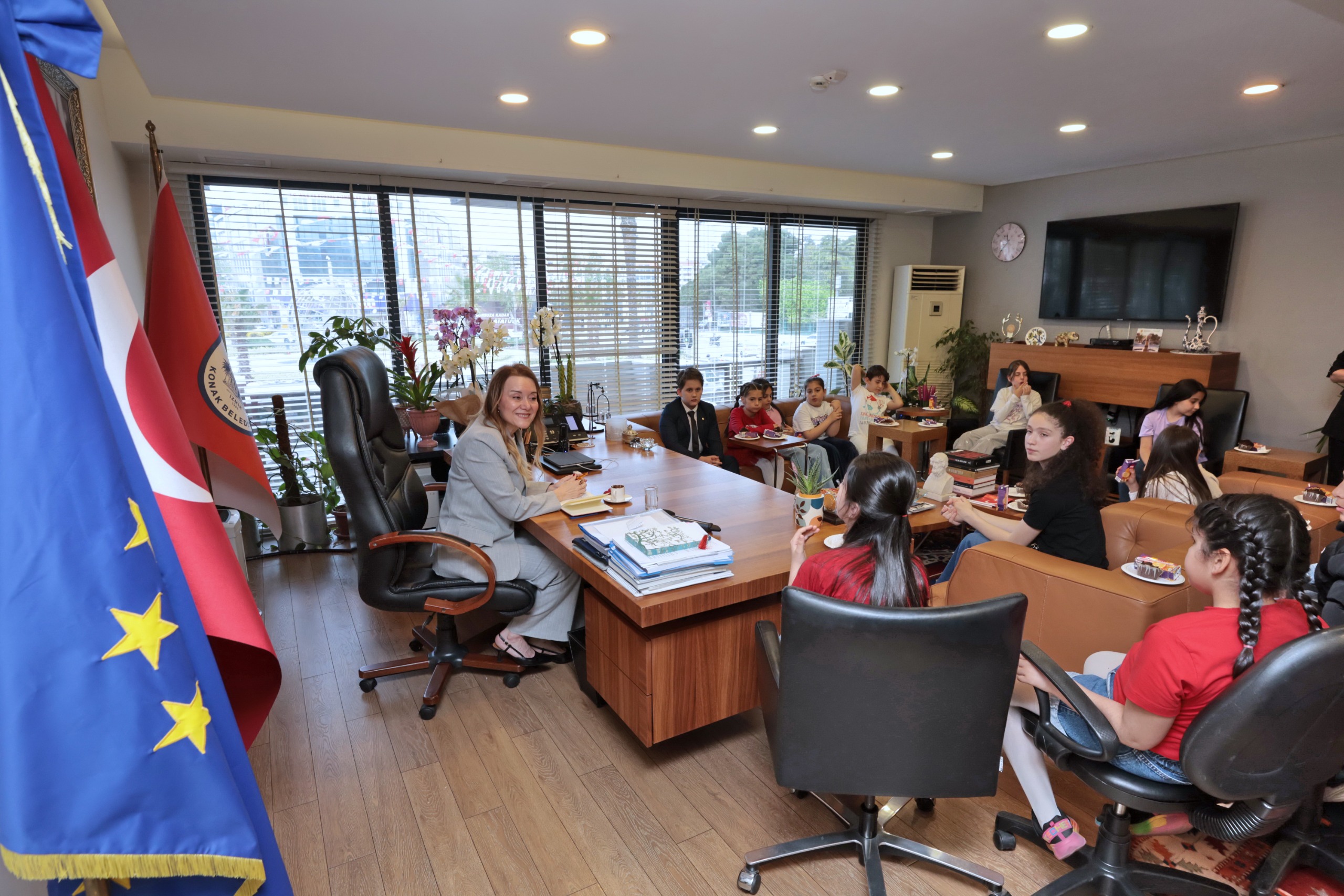 Kente ve geleceğe dair hayallerini dile getiren çocuklar, gündemin en önemli başlıklarından güvenlik konusundaki taleplerini de anlattı. Başkan Mutlu, Konak’ta çocukların eşit, adil ve güvenli bir ortamda büyümeleri için çalıştıklarını ifade ederek, “23 Nisan Ulusal Egemenlik ve Çocuk Bayramınız kutlu olsun. Türkiye’deki çocuklar çok şanslı çünkü onlara verilmiş bir bayram var” dedi.Konak Belediyesi’nde bu 23 Nisan’da da gelenek bozulmadı; Başkan Nilüfer Çınarlı Mutlu, Ulusal Egemenlik ve Çocuk Bayramı’nda makam koltuğunu ilçenin dört bir yanından gelen çocuklara devretti. Başkanlık koltuğuna tek tek oturan çocuklar, “Ben başkan olsaydım” diyerek Konak için hayallerini paylaştı. İlçedeki ilk ve ortaokullarda öğrenim gören, Mutlu Çocuklar Oyun Evlerine devam eden ve Konak Belediyesi’nin semt merkezlerindeki kurslara katılan çocukları konuk eden Başkan Mutlu, tüm çocukların bayramını kutlayarak, “23 Nisan Ulusal Egemenlik ve Çocuk Bayramınız kutlu olsun. Türkiye’deki çocuklar çok şanslı çünkü onlara verilmiş bir bayram var. Biliyorsunuz, Mustafa Kemal Atatürk bu bayramı sizlere armağan etti” dedi.