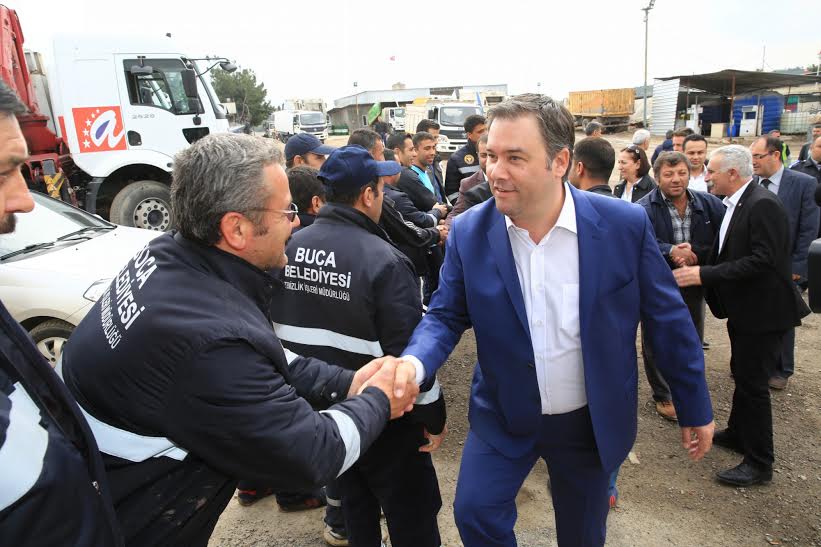 “Daha yaşanabilir bir Buca’yı birlikte yaratacağız”Temizlik İşleri’nde görevli mesai arkadaşlarının taleplerini dinleyen Başkan Piriştina, çalışanların daha sağlık ortamlarda görev yapabilmelerini sağlama sorumluluklarını yerine getirdiklerini söyledi.Piriştina, “Sizler bizim vatandaşların gözündeki notumuzsunuz. Çünkü insanlar ilk olarak temiz bir çevrede yaşamlarını sürdürmek istiyorlar. Bunun bilinci ile bizlerde sizin hayatınızı kolaylaştırmak, kamunun dar kaynaklarına rağmen verdiğiniz emeğin karşılığını bulmanız için çalışıyoruz. Bunun için şu anda belediyemizde en düşük çalışan maaşını 1800 lira yaptık. Memurlarımız ile yüzde 31’lik rekor zam oranıyla sözleşme imzaladık. Bizler sizlere güveniyoruz, sizlerde bize güvenin. Göreve başladığımızda koyduğumuz ‘Daha yaşanabilir bir kent yaratma’ hedefine sizlerle birlikte ulaşacağız. Buna inancım tam” diye konuştu.