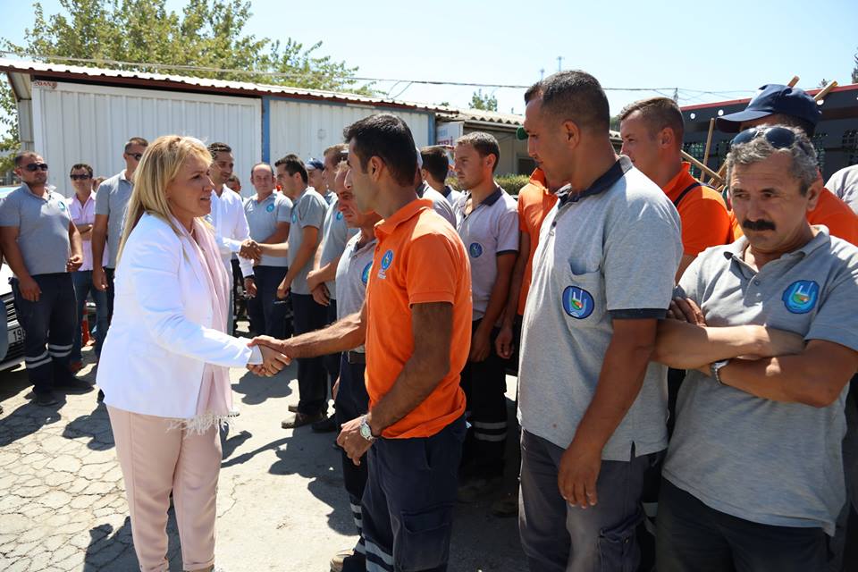 Şantiye alanındaki Fen İşleri ve Temizlik İşleri personelini de ziyaret eden Sibel Uyar, “Sizler bizim yüz akımızsınız. Biz büyük bir aileyiz. Sizler hizmetinizle belediyemizi temsil ediyorsunuz. İyi ki varsınız” dedi. Çalışanlar da Başkan Uyar'ın Kurban Bayramı'nı kutladı.
