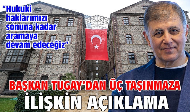 “Hukuki haklarımızı sonuna kadar aramaya devam edeceğiz”Ortada ciddi bir usulsüzlük ve yanlışlık olduğunu vurgulayan Başkan Tugay, “Ortada hukuksuz bir durum var. Şuna da inanıyorum; mahkemelerimiz doğru kararı verecektir. Geçmiş belgelere baktığınız zaman ki ikisini Meslek Fabrikası binasının üzerine astık; altında Atatürk imzası olan belge var orada. Kamulaştırılmış, parası verilmiş, Vakıflara da taviz ücreti ödenmiş. Bu şekilde belediyeye verilmiş bu binayı neye dayanarak alıyorsunuz? Bu nasıl bir anlayıştır? Bunu kabul edemeyiz. Dolayısıyla burada hukuki haklarımızı sonuna kadar aramaya devam edeceğiz. Arkadaşlarımız bütün itiraz noktalarından itirazlarda bulunuyor. Umuyorum Vakıflar Genel Müdürlüğü yaptığı bu büyük yanlışın bir an önce farkına varır ve durur; hele hele bizi tahliye etmeye kalkmazlar” diye konuştu.“Binaları boşaltmayı kesinlikle kabul etmiyoruz”Açıklamasında bir teklifte de bulunan Başkan Tugay, sözlerini şöyle sürdürdü: “Mahkeme sonuçlanana kadar tahliye etmeden bekleyelim, bu süre içinde istenirse ecrimisil de ödeyelim. Yeter ki oradaki hizmet devam etsin. Mahkeme kararını versin. Zaten bizim lehimize karar verirse sorun çözülecek. Diğer türlü olursa da biz o dönem içinde ecrimisil ödemiş oluruz. Bu binaları kesinlikle boşaltmayı kabul etmiyoruz. Böyle bir şeyin kabul edilmesi mümkün değil. Böyle bir girişimde bulunulmamasını umuyorum. İzmir halkını ve kamuoyunu bu konuda duyarlı olmaya davet ediyorum.”