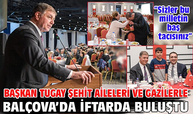 İzmir Büyükşehir Belediye Başkanı Dr. Cemil Tugay, Balçova’da şehit aileleri ve gazilerle iftar yaptı. İftarda tüm şehit aileleri ve gazilerin gelecek Ramazan Bayramı’nı kutlayan Başkan Tugay, “Sizler, bu milletin baş tacısınız. Şehitlerimiz 86 milyonun evladıdır. Sizler de bu milletin en kıymetli emanetlerisiniz. Sizlerin her zaman yanında olmayı bir görev değil, bir vefa borcu olarak görüyoruz” dedi.