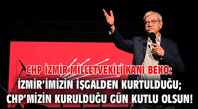 İzmir’in kurtuluşunun 100. CHP’nin kuruluşunun 99. Yıl dönümünün anlam ve önemini belirten CHP İzmir Milletvekili Kani Beko, 9 Eylül’ün Türk ulusunun bağımsızlığına bağlılığının göstergelerinden sadece birisi olduğunu vurgulayarak, “İzmir; işgal edildiği gün, Kurtuluş Savaşı'nı başlatan; İşgalin bittiği gün, Kurtuluş Savaşı'nı bitiren dünyadaki tek şehirdir. İzmir’imizin işgalden kurtulduğu gün kutlu olsun” dedi.