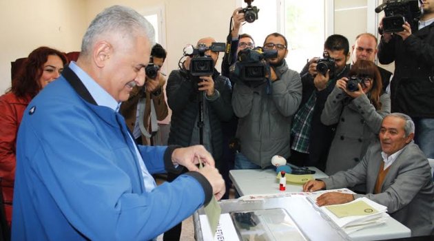 “TERÖRÜ BİTİRMEK İÇİN SİYASİ İSTİKRAR ŞART”Ülke kamuoyu gündemini derinden sarsan terör olaylarının sonlandırılması için siyasi istikrarın şart olduğunun altını çizen Yıldırım, ayrıca seçimlerin bir demokrasi bayramı olduğunu söyleyerek, “Etrafımızda yaşanan olayları dikkate aldığımızda bugün, ülke genelini fazlasıyla işgal eden terörün ülke gündeminden çıkması için mutlaka ve mutlaka siyasi istikrar çok önemlidir. Seçimler demokrasi bayramıdır. Demokrasi bayramını bugün tekrar kutluyoruz. 50 milyonun üzerindeki seçmenimiz yurdun her köşesinde oy hakkını kullanacak ve bu demokrasi bayramında ben de varım. Tekrar hayırlı ve uğurlu olsun” ifadelerini kullandı.