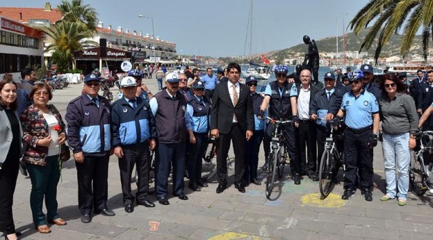 Foça Belediyesi Bisikletli Zabıta Timi’nin, trafiğin yoğun olduğu caddelere ve araçların girmekte zorlandığı sokaklara bisiklet aracılığıyla kolayca ulaşabileceğini belirten Foça Belediye Başkanı Gökhan Demirağ; “Halkımızın huzuru ve ilçenin düzeni için çalışan zabıta ekiplerimiz, hizmetlerini hızlı ve etkin bir biçimde yerine getirebilecek. Bu uygulama, kent içi ulaşımda bisiklet kullanımının özendirilmesini sağlayacaktır” dedi.Foça Belediyesi Bisikletli Zabıta Timi’nin yanı sıra, Foça İlçe Emniyet Müdürlüğü bünyesinde hizmete giren ve beş personelden oluşan Bisiklet Timi de, ilçede görev yapmaya başladı.Bisiklet timlerinin göreve başlamaları dolayısıyla, hizmet açılışı ve kortej yürüyüşü yapıldı.