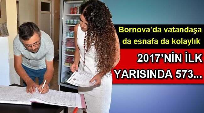 Bornova Belediyesi yurttaşların işini kolaylaştırmak için hizmeti vatandaşın ayağına götürüyor. Belediyeye ruhsat için başvuru yapan esnafın, onaylanmış ruhsatları Zabıta ve Ruhsat Denetim Müdürlüğü ekipleri tarafından işyeri sahiplerine adreste teslim ediliyor. 2017 yılının ilk 6 ayı içinde 573 esnafa ruhsat teslim edildi. Ayrıca 1063 iş yeri Ruhsat Denetim Müdürlüğü tarafından denetlenirken, iletilen 561 şikayete de yerinde tespit yapıldı. Yine ilk 6 ay içinde kurallara uymayan 344 iş yerine para cezası uygulanırken, 315 iş yerine de para ve kapatma cezası verildi.