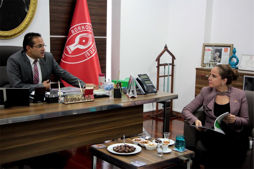 Tanıtım ve Halkla İlişkilerden Sorumlu CHP Genel Başkan Yardımcısı Yasemin Öney’in Bornova’daki ilk durağı Bornova Belediyesi oldu. Cankurtaran, Başkan Olgun Atila’yı makamında ziyaret etti. Bir önceki dönem Bornova Belediye Başkanı CHP Genel Sekreteri Kamil Okyay Sındır’ın eşlik ettiği Cankurtaran, Başkan Olgun Atila’dan Bornova ve Bornova Belediyesi hakkında bilgi aldı.
