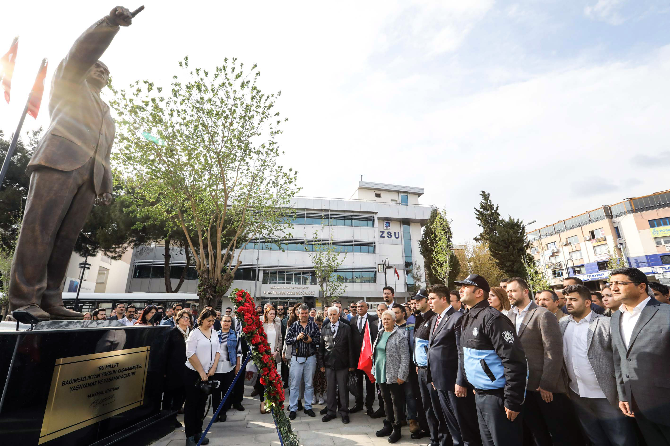 Buca Belediye Başkanı Erhan Kılıç Devir teslim töreninin ardından yüzlerce Bucalıyla birlikte Çevik Bir Meydanı’nın da Atatürk Heykeline çelenk sundu.