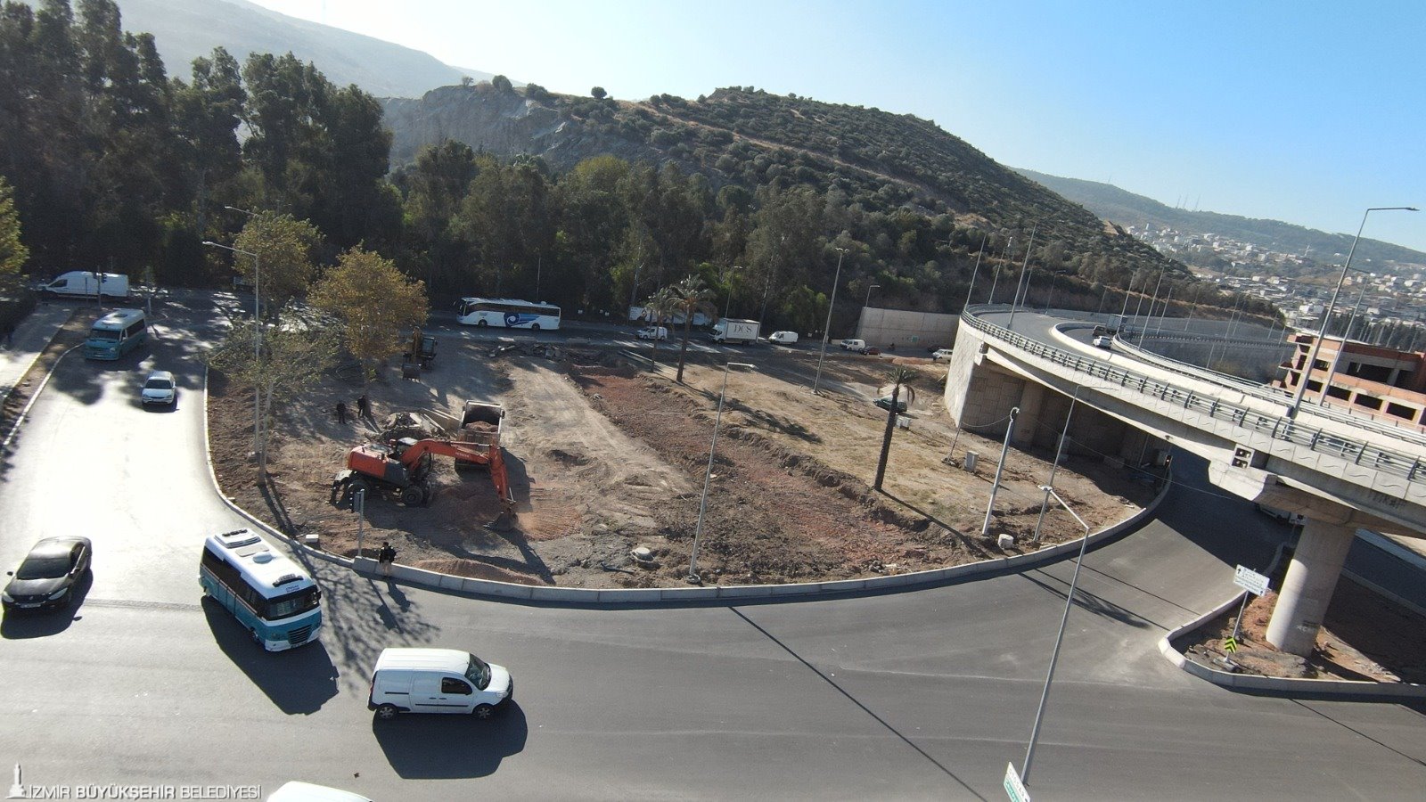 Yapımı süren Buca Onat Tüneli Projesi kapsamında tamamlanarak trafiğe açılan bağlantı yolu viyadüklerin altında kalan, İzmir Şehirlerarası Otobüs Terminali’nin giriş kapısının da bulunduğu alanda peyzaj ve çevre düzenlemesi çalışmaları devam ediyor.