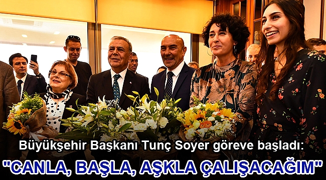Kentin 35. belediye başkanı olmanın gururunu yaşadığını ifade eden Başkan Tunç Soyer, “Bu şehri gerçekten koruyarak geliştirmeye gayret edeceğiz. Öncelikli iki ana hedefimizden biri bu şehrin refahını artırmak olacak. Bu da üretimle olacak. İkinci hedefimiz ise refahın adil bir şekilde paylaşılmasını sağlamak. Bu iki hedefi gerçekleştirmek için canla başla çalışacağız. İzmir tüm Türkiye’de çok daha yakından izlenen, gıpta edilen ve takip edilen, örnek alınan bir kent olacak. Bu umutla ve bu inançla, Aziz Başkanımızın bıraktığı yerden devam edeceğiz. Bu güvene layık olmak, İzmir’de hiç kimsenin başını eğdirmemek, her İzmirlinin bu kentle daha çok gurur duymasını sağlamak için canla, başla, aşkla &cced il;alışacağız” dedi.