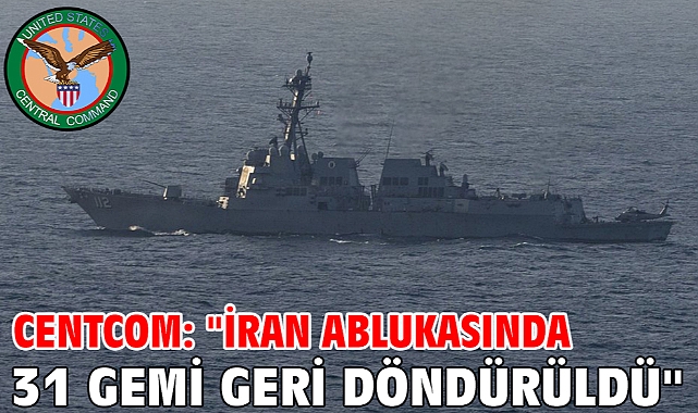 ABD Merkez Kuvvetler Komutanlığı (CENTCOM), İran'a yönelik uygulanan abluka kapsamında bugüne kadar 31 geminin rotasından geri döndürüldüğünü veya limana dönmesi yönünde talimat verildiğini duyurdu.