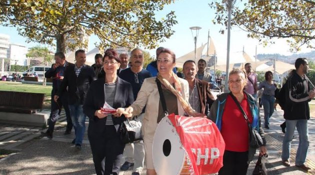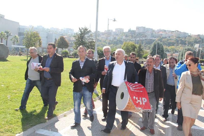 ÖZKAN: ADALET İSTİYORUZ!CHP İzmir milletvekili Tuncay Özkan ise İzmir'de CHP'nin yerel yönetimde iktidar olmasına karşın duvar ve billboardlarda AKP'nin reklamlarının yer aldığını söyledi. Ahmet Davutoğlu'ndan tek tek seçmenlere 1 milyon 700 bin TL maliyetle mektup gönderdiğini belirten Özkan, "Bizim böyle kaynağımız olmadığı için davulla sesimizi duyurmaya çalışıyoruz. TRT ve özel televizyonlarda Cumhurbaşkanı Recep Tayyip Erdoğan ve AKP'ye CHP'nin kat ve kat üzerinde süre ayrılıyor. Billboardlarda bizden 15 kat fazla afişleri var. Adalet, özgürlük istiyoruz. Sesimizi davulla duyurmaktan başka çaremiz kalmadı" dedi.CHP'liler davulla önce Kemeraltı daha sonra ise deniz kıyısından Cumhuriyet Meydanı'na doğru yürüyüp seçmeni sandık başına çağırdı.
