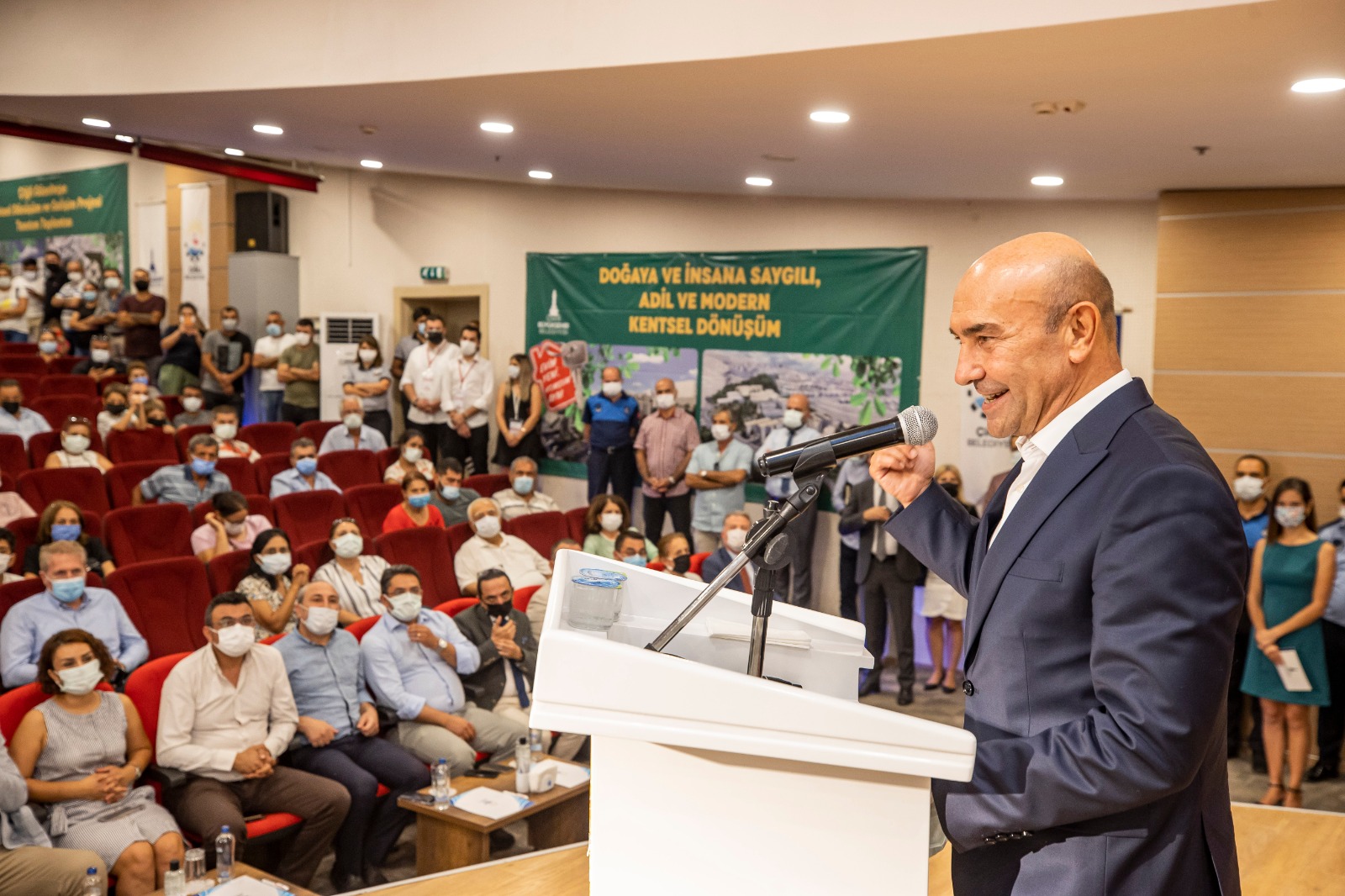 Çiğli'nin Güzeltepe Mahallesi'nde hayata geçirilecek Kentsel Dönüşüm ve Gelişim projesinin tanıtım toplantısında konuşan İzmir Büyükşehir Belediye Başkanı Tunç Soyer, yıllardır kentsel dönüşümü bekleyen mahalle sakinleri için ilk adımı attıklarını, bu nedenle heyecanlı olduğunu söyledi. Soyer, bu projede İzmir Büyükşehir Belediyesi'nin hiç bir kazanımı olmadığını belirterek, “Aksine Büyükşehir'e ait 30 dönüm araziyi de Güzeltepe'nin kentsel dönüşümü için tahsis ediyoruz” dedi.