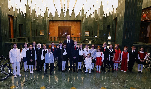Cumhurbaşkanı Erdoğan, 23 Nisan Ulusal Egemenlik ve Çocuk Bayramı'nda Cumhurbaşkanlığı Külliyesi'nde, kabine toplantısının yapıldığı salonda Bakan Tekin ve beraberindeki çocukları kabul etti. Cumhurbaşkanı Erdoğan, çocuklarla sohbet etti. Kabul sırasında 3'üncü sınıf öğrencisi Mutlucan Korkmaz ile anasınıfı öğrencisi kardeşi Gülsü Işıl Korkmaz, şiir okudu. Korkmaz kardeşlerin daha önce sanal medyada paylaşılan görüntüleri de salonda Cumhurbaşkanı Erdoğan’a izletildi. Programda duygusal anlar yaşandı. 'Minareler süngü, kubbeler miğfer' dizeleriyle başlayan 'Asker Duası' şiirini okuyan Mutlucan, heyecanlandı ve gözyaşlarını tutamadı. Cumhurbaşkanı Erdoğan da 'Mutlucanlar ağlamaz' diyerek moral verdi.'HAYATIN HER ALANINDA PARLAYACAKSINIZ'Cumhurbaşkanı Erdoğan, çocukların 23 Nisan Milli Egemenlik ve Çocuk Bayramı'nı kutlayarak, "Geçtiğimiz hafta milletçe hepimizi üzen iki olay yaşadık. Saldırılarda kaybettiğimiz canlarımıza Allah'tan rahmet diliyor, tedavileri devam eden vatandaşlarımıza acil şifalar temenni ediyorum. 23 Nisan'ı çocuklara armağan eden Gazi Mustafa Kemal Atatürk ve silah arkadaşlarıyla Milli Mücadele'yi başarıyla yöneten Meclisi'mizin değerli üyelerini saygıyla yad ediyorum" dedi. Erdoğan, her bir çocuğun kendileri için umut olduğunu dile getirerek, "Işıl ışıl parlayan gözleriniz, gökyüzü kadar temiz ve masum yüzleriniz, şefkat ve merhamet dolu yüreğiniz ile her biriniz bizim umudumuzsunuz. Sizin gibi yavrularımızla her buluşmamızda Türkiye'nin aydınlık geleceğine olan inancım daha da artıyor, güçleniyor. Çünkü ileride bu koltuklarda sizler oturacak, bu makamlara inşallah sizler geleceksiniz. Üstlendiğiniz görevlerde ülkenize ve milletinize en güzel şekilde hizmet edeceksiniz. Biliyorum ki aranızdan çok kıymetli isimler çıkacak. Bilimde, sanatta, sporda, siyasette, sivil toplumda yani hayatın her alanında birer yıldız gibi parlayacaksınız. Yeter ki hayallerinizle aranıza hiçbir engelin girmesine izin vermeyin. Yeter ki kendinize güvenin, başarabileceğinize inanın. Disiplinli bir şekilde çalışmaktan hiçbir zaman vazgeçmeyin. Gerisi sadece biraz sabır ve zaman meselesidir. Bundan hiçbir şüphe duymadığımı özellikle vurgulamak istiyorum. Bugün ne yapıyorsak, sizin hayallerinizi gerçekleştirmeniz için yapıyoruz. Ne yapıyorsak, gözlerinizdeki ışık hayatınız boyunca hiç sönmesin diye yapıyor, bunun samimi mücadelesini veriyoruz. Sizleri seviyor, her birinize inanıyor, güveniyorum. Hepinizin tek tek gözlerinizden öpüyorum" diye konuştu.ERDOĞAN KOLTUĞUNU DEVRETTİErdoğan, koltuğunu Büyükhanlı Kardeşler Ortaokulu 5'inci sınıf öğrencisi Civan Boran Vargün'e bıraktı. Civan Boran Vargün, "23 Nisan 1920 Gazi Mustafa Kemal Atatürk'ün liderliğinde milletimizin geleceğine inanan ve kendini bu yola adayan büyüklerimizin iradesiyle, milletimizin kendi geleceğine yön verme kudretini dünyaya ilan ettiği tarihimizin en önemli dönüm noktalarından biridir. Bu anlamlı günün 106'ıncı yılında devletimizin en yüce makamında bulunmak bizler için büyük bir gurur ve motivasyon kaynağıdır. Bugün Türkiye'nin dört bir yanındaki çocukların sesi olarak buradayız. 'Maarifin kalbinde çocuk' anlayışıyla kurulan her hayalin, atılan her adımın odağında yer aldığımızı biliyoruz. Bizler merak eden, üreten, erdemli ve merhametli, kendisinden emin olunan insanlardan oluşan bir nesil olacağız. Teknolojiyi bilinçli kullanacak, dijital esenlik içinde büyüyecek, doğayı koruyacak, israftan uzak duracak ve daha yaşanabilir bir dünya için gayret göstereceğiz. Çünkü biliyoruz ki bize sunulan her imkan, geleceğe karşı taşıdığımız bir sorumluluktur. Geçtiğimiz günlerde okullarımızda yaşanan acı hadiseler hepimizin yüreğinde derin bir iz bıraktı. Hayatını kaybeden Ayla öğretmenimize ve arkadaşlarımıza Allah'tan rahmet, ailelerine ve milletimize sabır diliyoruz. Yaralanan arkadaşlarımızın ise en kısa sürede sağlıklarına kavuşmasını temenni ediyoruz. Bu acı bizi zayıflatmaz, aksine daha da güçlü dayanışma iradesi etrafında birleştirir ve kararlılığımızı pekiştirir. Sevgiyle, dayanışmayla ve ortak bir vicdanla büyüyen nesil olarak hem kendi ülkemizde hem de dünyanın neresinde olursa olsun ihtiyaç duyan herkes için iyiliği ve barışı çoğaltacağız. Başta Gazi Mustafa Kemal Atatürk olmak üzere milli egemenliğimizi aziz milletimize emanet eden tüm kahramanlarımızı rahmet ve minnetle yad ediyorum" dedi.Vargün, gazetecilerin sorularına da yanıt verdi. Türkiye'nin savunma sanayisindeki başarılarının sorulması üzerine Vargün, "Bütün gemilerimizi, uçaklarımızı, füzelerimizi hazırlayan, tasarlayan mühendislerimize teşekkür ediyorum. Savunma sanayimiz hakkında birçok proje ve çalışmayı hayata geçireceğim" diye konuştu. Cumhurbaşkanı Erdoğan, programın sonunda çocuklarla fotoğraf çektirdi ve bisiklet hediye etti. (DHA)