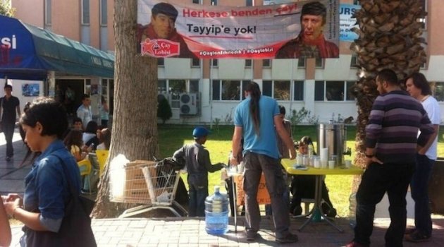 Ege Üniversitesi'nde kafeteryadaki çay zammını protesto ederken 'Çiçek Abbas' filminden esinlenerek, 'Herkese benden çay, Tayyip'e yok' yazılı pankartla Cumhurbaşkanı Recep Tayyip Erdoğan'a hakaret ettikleri iddiasıyla 1 yıldan 4 yıla kadar hapis cezası istemiyle yargılanan 3 öğrenci beraat etti.