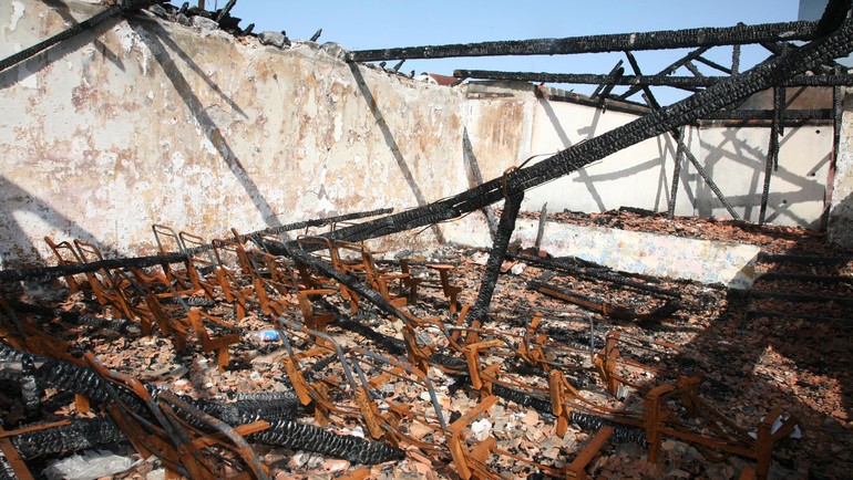 Okulun camlarının büyük bölümü de kırıldı. Sınıflara pislikten, kokudan girilmez oldu. İşe yarayan birşey bırakmayan hırsızlar, şimdi de okulun çatısındaki kiremitleri söküp götürmeye başladı. Bu yıl başlarında ise okul bahçesindeki, önceden tiyatro gösterilerin yapıldığı, konferans salonu olarak da kullanılan bina yakıldı.
