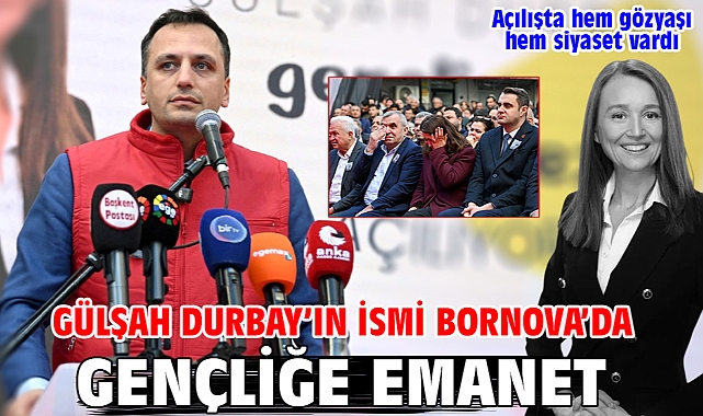 Bornova Belediyesi tarafından hayata geçirilen Gülşah Durbay Gençlik Merkezi, geniş katılımlı ve duygusal bir törenle açıldı.Açılışa; CHP Grup Başkanvekili Ali Mahir Başarır, CHP Genel Başkan Yardımcıları Gökçe Gökçen ve Yankı Bağcıoğlu, CHP İzmir Milletvekilleri Deniz Yücel ve Ednan Arslan, CHP İzmir İl Başkanı Çağatay Güç, CHP Gençlik Kolları Genel Başkanı Cem Aydın, Manisa Büyükşehir Belediye Başkanı Besim Dutlulu, İzmir Büyükşehir Belediyesi Başkan Vekili Atilla Baysak ve çok sayıda yerel yönetici katıldı.