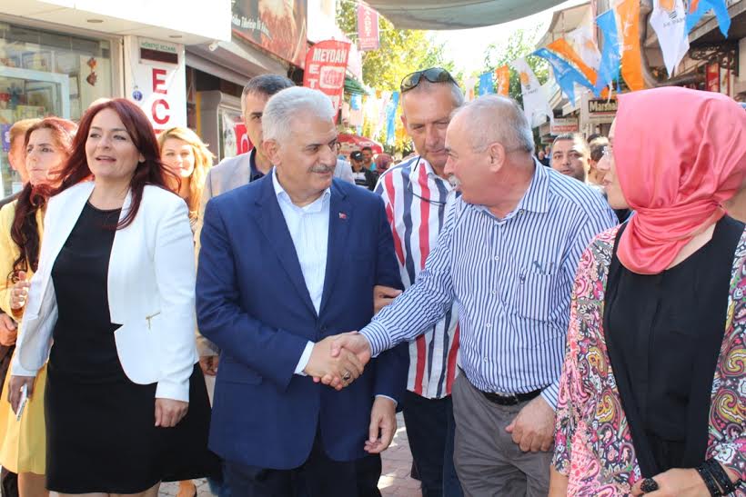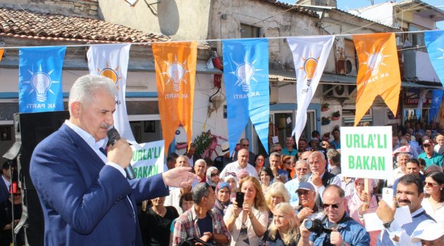 İzmir’in Türkiye için farklı bir önemi olduğuna vurgu yapan Yıldırım Urlalılara bir müjde verdi. Yeni yapılan 200 yataklı Urla Hastanesinin şimdiden yetersiz kaldığını söyleyen vatandaşlara hastanenin kapasitesini 2 katına çıkartma sözü verdi. Çeşmealtı yat limanı ile ilgili çalışmaların 2011 yılında 35 proje kapsamında gündeme geldiğini ifade eden Yıldırım “bir projenin uygulamaya konması en kolay iştir. Esas mesele projelere izin çıkması. Bürokrasi eskiye göre çok daha iyi ama esas olan zihniyeti değiştirmek. Zihniyet neyse mevzuat o oluyor. İzmir bunun en güzel örneği” dedi.Urla’da Mini MitingUrla merkezde düzenlenen mini miting ile vatandaşlara seslenen binali yıldırım 1 Kasım seçimlerinin ülkenin istikbalini belirleyecek öneme sahip olduğunu ifade etti. Yıldırım seçimlerde Urlalılardan destek isterken “vereceğiniz desteğin kat kat fazlasını geri alacağınıza söz veriyorum.” dedi. “Biz yolları böldük gönülleri birleştirdik.” diyen Yıldırım kendisine ‘Yolların Kralı’ diyenlere “biz olsak olsak bu milletin hizmetkârı oluruz. Adam ola ki bıraka bu dünyada eser, eseri olmayanın yerinde yeller eser. Çok şükür çok eserimiz var” dedi ve yapılan hizmetleri anlattı.Kararı Siz VerinUrlalıların yoğun ilgisi ile karşılaşan Binali Yıldırım sevgi selini karşılıksız bırakmadı. Esnaflar ile tek tek tokalaşan Yıldırım selfie yapmayı, vatandaşlara tavuk pilav servisi yapmayı da ihmal etmedi.Meydan mitinginin ardından Urla İlçe teşkilatı ile buluşan Binali Yıldırım teşkilat üyeleri ile özlem giderdi. Coşku ile karşılandığı Urla’da salonu dolduran kalabalığa seslenen Yıldırım 7 Haziranda verilen koalisyon sorumluluğunu hiçbir partinin yerine getiremediğini hatırlatarak “Kararı partilere bırakmayın, sandıkta kimin iktidar olacağının kararını kendiniz verin. Kim olursa olsun tek başına iktidar yapın. İçerde ve dışarıda enerjimizi tüketmeye çalışanlara fırsat vermeyin. 1 Kasım’da sandık başına gidelim istikrardan yana oy kullanalım.” dediSorunlara Anında ÇözümUrla ziyaretinin ardından Seferihisar’a gelen Binali Yıldırım Mandalina Birliği Kooperatifinde üreticiler inşaat işçileri ve balıkçılar ile bir araya geldi. Yarımada bölgesinde etkili olan mandalina sektörü hakkında bilgi alan Yıldırım sektörün sorunlarını dinledi. “Bize oy vermeyenlerden bile bu seçimde ülkemizin geleceği için ödünç oy talep ediyorum.” diyen Yıldırım şöyle konuştu; “Sorunları torunlara bırakan anlayışımız olmadı. Etrafımız ateş çemberi. Ülkemizde 32 senedir süren terör var hem canımızı yakıyor hem malımıza kastediyor. Onlara karşı durmanın yolu güçlü olmaktan geçer. Birlik ve kardeşliğin kıymetini bilmemiz gerekir.”