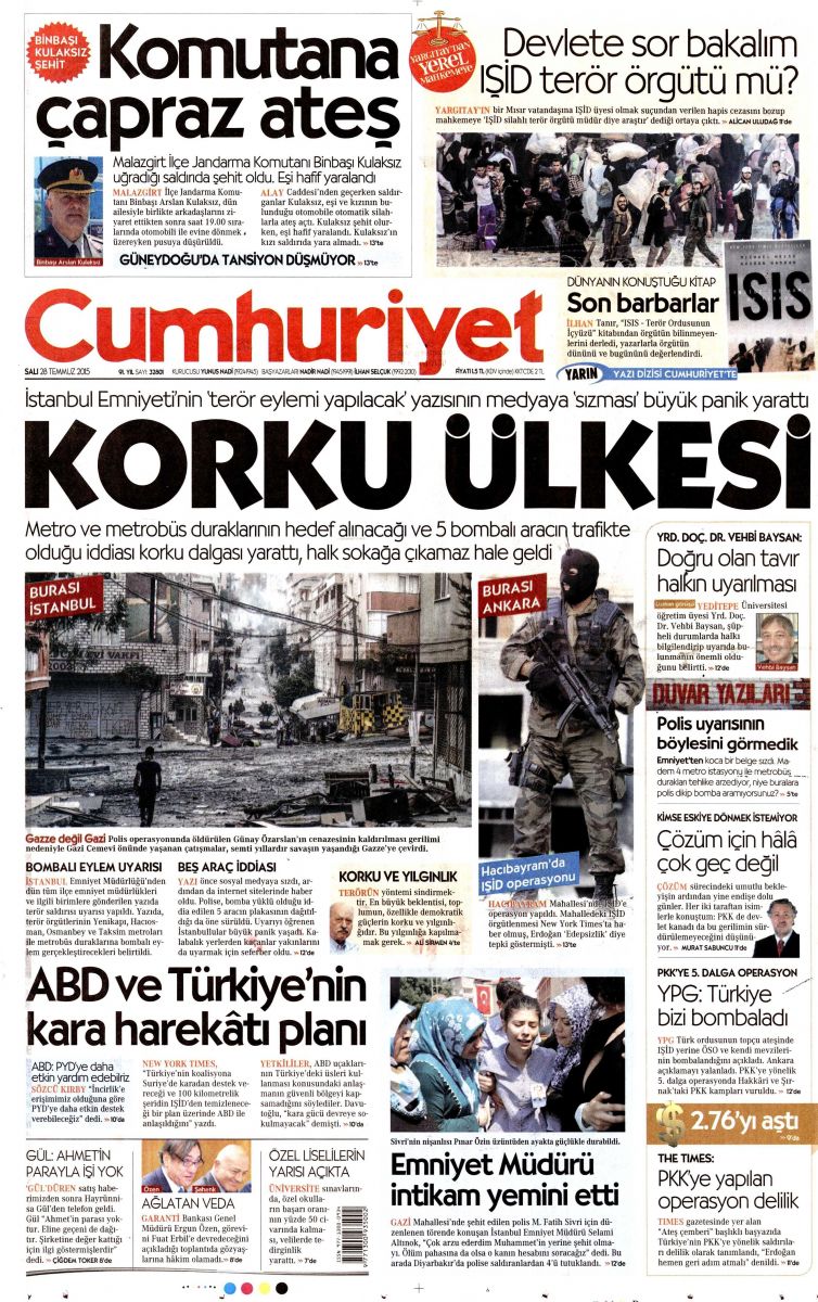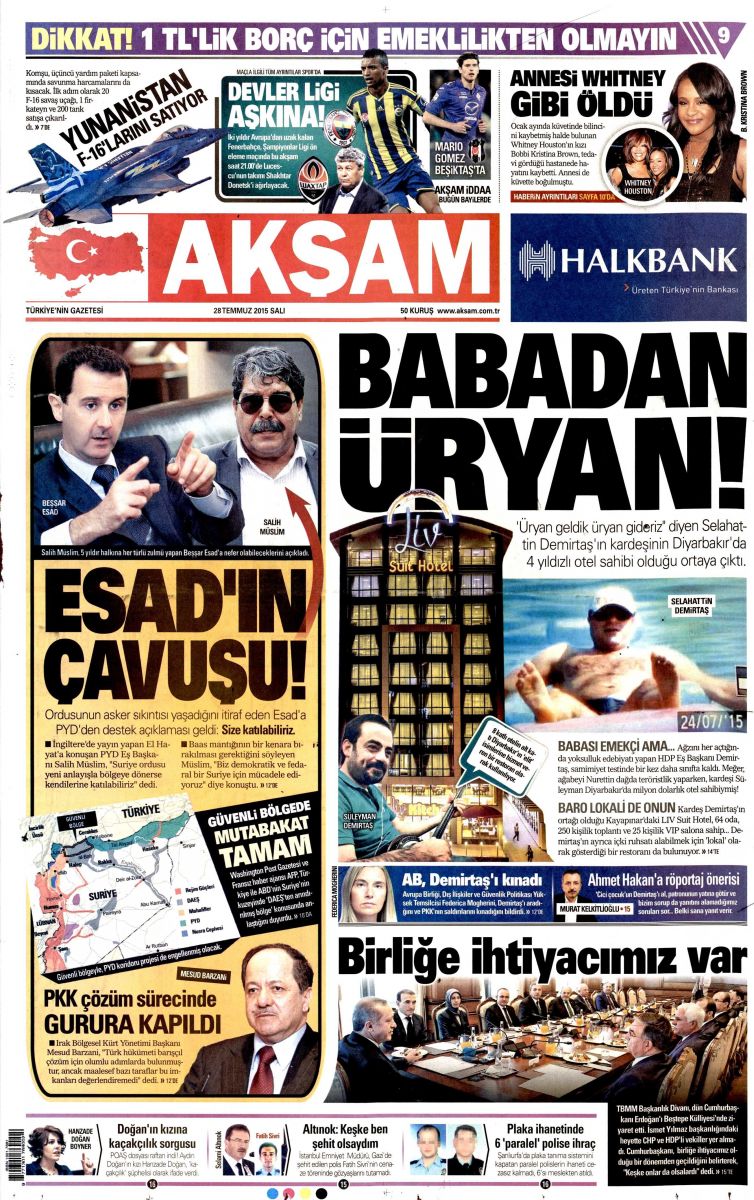 GÜNDEM Yayınlanma: 28 Temmuz 2015 - 11:18 Hangi gazete ne yazdı? 28.07.2015 günün gazete manşetleri GÜNDEM 28 Temmuz 2015 - 11:18 Yorumlar Yazdır A Büyüt A Küçült Yorumlar # günün manşetleri YORUMLAR adlı kullanıcıya cevap x Gönder İlginizi Çekebilir Ümit Özdağ: Mobilya sektöründeki 5 milyar dolarlık ihracat 50 milyar dolara çıkartılmalı CHP'li Emir: "Okulların güvenliği ile ilgili önergelerimiz reddedildi" İmamoğlu'nun koruması: "Kamera bantlama işi koruma ekibinin aldığı karar doğrultusunda yapılmıştır" TBMM Genel Kurulu kapandı Son Haberler Başkan Tugay: "Binalara göz koymak yerine yapacağınız tonla iş var" Ümit Özdağ: Mobilya sektöründeki 5 milyar dolarlık ihracat 50 milyar... CHP'li Emir: "Okulların güvenliği ile ilgili önergelerimiz reddedildi" İmamoğlu'nun koruması: "Kamera bantlama işi koruma ekibinin aldığı... TBMM Genel Kurulu kapandı Çok Okunan Haberler 16 Nisan 2026 Güncel Altın Fiyatları 16 Nisan 2026 Güncel Dolar fiyatları Çiğli'de "Emekli Kafe" İçin Geri Sayım Başladı Karşıyaka’da dev kitap dayanışması Karşıyaka’da dev kitap dayanışması