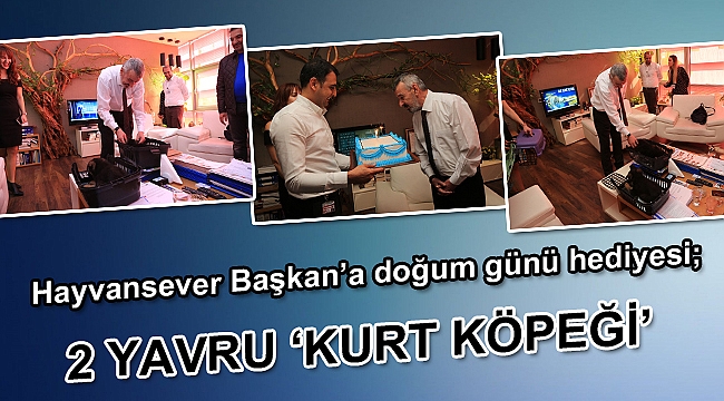 Ulu Önder Mustafa Kemal Atatürk’ün ölüm yıldönümü 10 Kasım’da dünyaya gelen Gaziemir Belediye Başkanı Halil İbrahim Şenol, doğum günlerini 11 Kasım’da kutluyor. Şahsi hediye kabul etmeyen, doğum günlerini kutlamaktan hoşlanmayan hayvansever Başkan Şenol’a belediye personelinin bu yılki hediyesi de iki tane Alman kurdu yavrusu oldu.