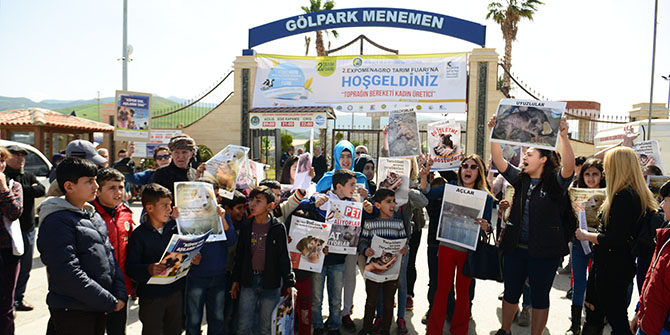 Son zamanlarda Menemen'in birçok noktasında ölü köpeklerin bulunması üzerine HAYTAP harekete geçti. Dün öğle saatlerinde İnönü Mahallesi'nde bulunan Gölpark'ın önünde toplanan hayvanseverler, Menemen Belediyesi Başkanı Tahir Şahin'i protesto etti. Menemen’de sokak hayvanları için bakım ve kısırlaştırma merkezi bulunmadığı vurgulayan HAYTAP üyeleri, konuyu defalarca Menemen Belediyesi Başkanı Tahir Şahin’e bildirilmelerine rağmen herhangi bir çalışma olmadığını belirtti. Ayrıca, hayvanseverler sokak hayvanlarının temel ihtiyaçları karşılanmadığı için açlıktan ölmeye terk edildiğini ifade etti. Öte yandan, 2004 yılında sokak hayvanları için çıkarılan 1599 sayılı kanuna göre, her belediyenin geçici bakım evi ve kısırlaştırma merkezi yapmakta zorunlu olduğunun altını çizen HAYTAP üyeleri, ''Sokak hayvanlarının tedavisi yapmak, kısırlaştırılmasını sağlamak ve aynı çöp toplamak gibi belediyelere verilen görevlenden biridir. Menemen Belediyesinin bu görevi yerine getirmediği için, hayvan ölümleri artımış ve şikayetleride beraberinde getirmiştir. Menemen Belediyesi, nasılsa sınırlarımız içerisinde İzmir Büyükşehir Belediyesinin Seyrek Bakım evi var diyerek, bakım evinin yapılmamasını gerekçe göstermektedir. Bornova'da bulunan bakım merkezine de arada mesafe bulunduğu için götürmek istemediğinden, senelerdir dağa, taşa hayvan bırakmış, hatta seneler önce itlaf ettiği kanıtlanmıştır. Bizden gelen şikayetler üzerine itlaf yapmamaya başlamıştır. Son olarak belediye başkanı ile görüştüğümüzde, 'Özür diliyoruz, geç kaldık. 2 ay içerisinde yapacağız' dediler fakat aradan 4 ay geçmesine rağmen henüz bir adım dahi atımadı. Hayvanlara bakmak, sadece bir görev değil vicdan meselesi de demektir'' şeklinde açıklama yaptı.