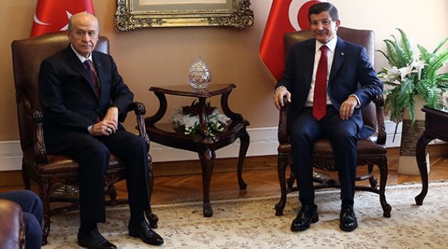 AKP Genel Başkanı Ahmet Davutoğlu MHP Genel Başkanı Devlet Bahçeli'yle yaptığı görüşmede Bahçeli'nin bir koalisyon içinde yer almayacaklarını söylediğini aktardı.