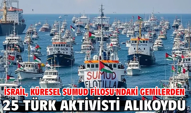 İsrail ablukasını kırmak ve insani yardım ulaştırmak amacıyla Gazze'ye doğru ilerleyen Küresel Sumud Filosu'nun Türkiye Delegasyonu, İsrail donanma unsurlarının, filoya ait gemilerden 25 Türk aktivisti alıkoyduğunu açıkladı.