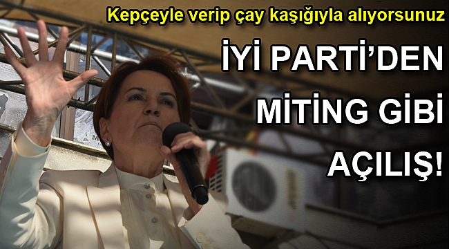 Ateş bacayı sardıCumhurbaşkanı ve AK Parti Genel Başkanı Recep Tayyip Erdoğan’a yüklenen Akşener, “Görev dağılımı yaptılar. Bir tanesi bize sövüyor öbürü de ilçe ilçe geziyor. Adalet ve Kalkınma Partisi’nin genel başkanı ilçe ilçe kongre geziyor. Biz nereye gidiyoruz oraya geliyor. Ateş bacayı sardı. Korku dağları sardı. Ama bu saray koalisyonu bilinmelidir ki sandalyem korunsun çıkar ittifakıdır. AK Parti ittifak konusunda uzmandır. Önce açılım sürecinde PKK ile ittifak yaptı. Adı yıkım ittifakı. Sonra FETÖ ile ittifak yaptı adı çukur ittifakı. Şimdi bir ittifak yaptılar. Bizce adı çıkar ittifakı. Ama bu millet bu çıkar ittifakını yerle bir edecek” dedi.Bunun adı diktatörlüktürAkşener, İzmir’deki yoğun kalabalık için, “Bir il binası açılışı yapıyoruz bir miting havasındayız. Günlerce hazırlığı yapılan bir miting için bile böyle olmaz. Sizin kararlılığınız bize güç ve kuvvet veriyor” diye konuştu ve iktidarı hedef aldı. Akşener, “Bugün Türkiye’ye baktığınız zaman, konuşamıyor. Türkiye problemlerini çözecek sonuçlar üretemiyor. 10 senedir büyük bir baskı var. Adaletin cenaze namazının kılındığı hakimlerin korkutulduğu bir süreçten geçiyoruz. İyi Parti bu yola çıktı. Birincisi konuşan bir Türkiye gerçekleştirmek için. Türkiye konuşacak. Sorunlarına çözüm bulacak. TBMM an itibariyle fiilen ortadan kalkmıştır. Adalet ve Kalkınma Partisi’nin gurubundaki milletvekillerinin iradesi yoktur. En küçük konuda karar veren tek kişiyle karşı karşıyayız. Bunun adı tiranlıktır, diktatörlüktür. Diktatörler önce kendileri korkar. Kendileri korktuğu zaman insanları korkuturlar. Ama bir gün birileri korkmuyoruz dediği zaman tüm korkular biter. Cesaret bulaşıcıdır” açıklamasında bulundu.