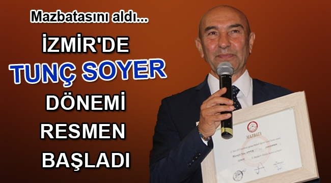 İzmir Büyükşehir Belediye Başkanlığı’na 31 Mart yerel seçimleri sonucunda gelen Tunç Soyer, seçim kurulundan mazbatasını aldı. Kültürpark’taki 4 nolu holde coşkulu kalabalık tarafından karşılanan Soyer burada yaptığı konuşmada önemli mesajlar verdi. Törene CHP İzmir İl Başkanı Deniz Yücel, CHP’li belediye başkanları ve partililer katıldı.