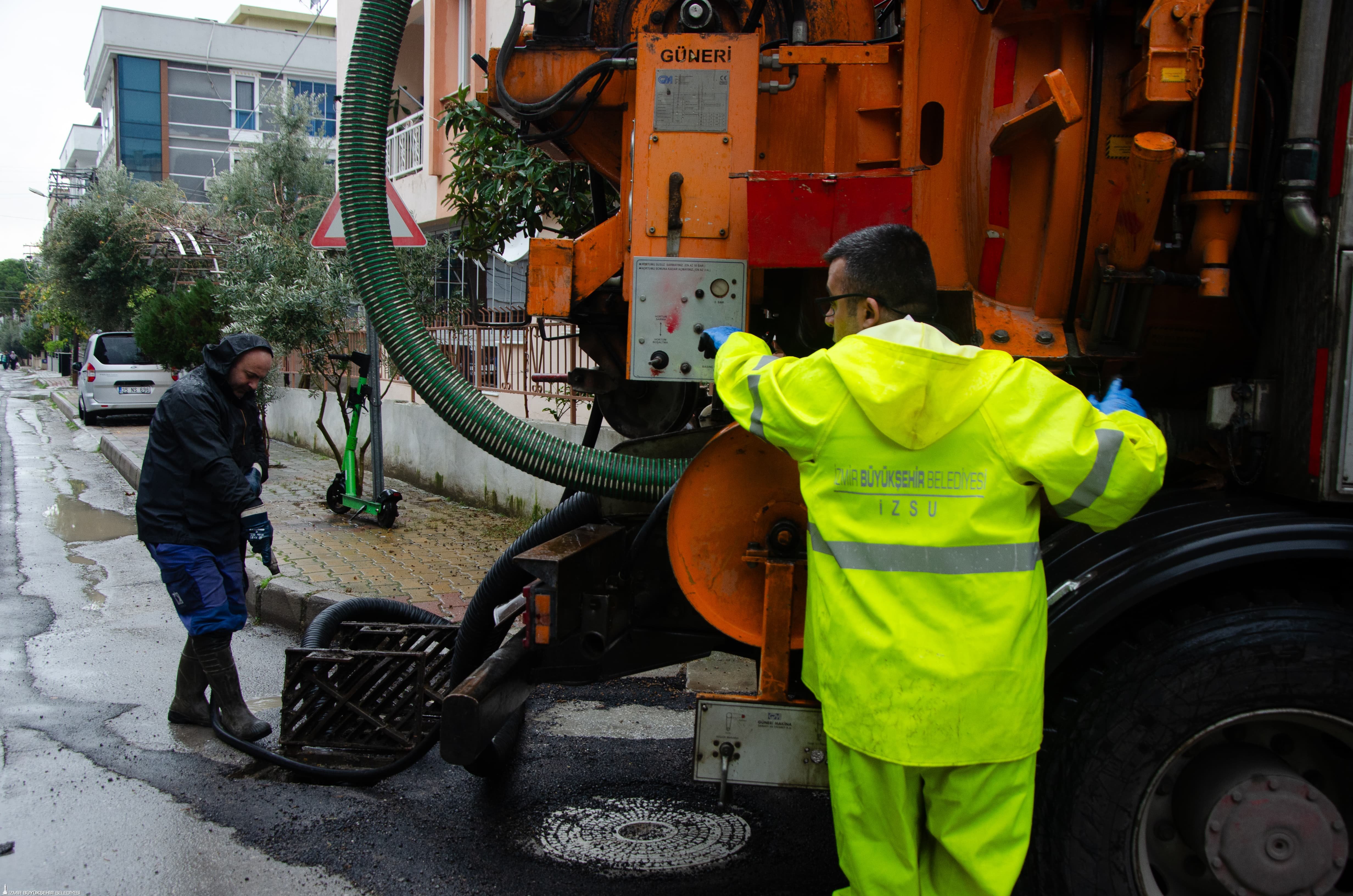 İzmir Büyükşehir Belediyesi’ne bağlı İZSU Genel Müdürlüğü, İtfaiye ve Fen İşleri Daire Başkanlığı’nda görevli yaklaşık 900 personel ve 415 araçla birlikte; yağmur, dolu, kuvvetli rüzgardan kaynaklanabilecek olumsuzluklara karşı İzmir genelinde çalışmalarını sürdürüyor. Su baskını ve taşkınlara karşı dere, kanal ve yağmur suyu ızgaralarında kontroller ve temizlik çalışmaları da aralıksız olarak yapılıyor.