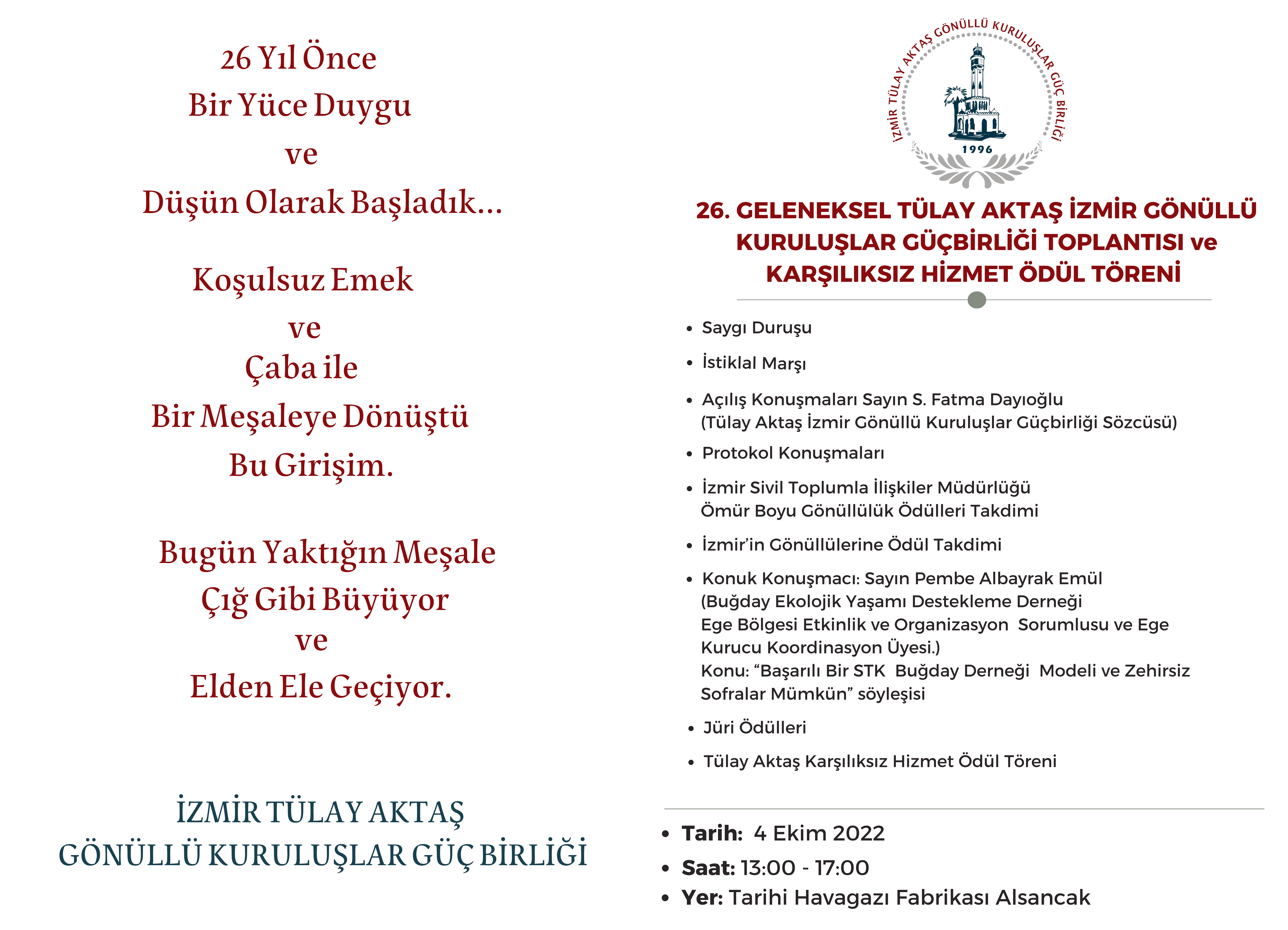 26. Geleneksel Tülay Aktaş İzmir Gönüllü Kuruluşlar Güç Birliği Toplantısı ve