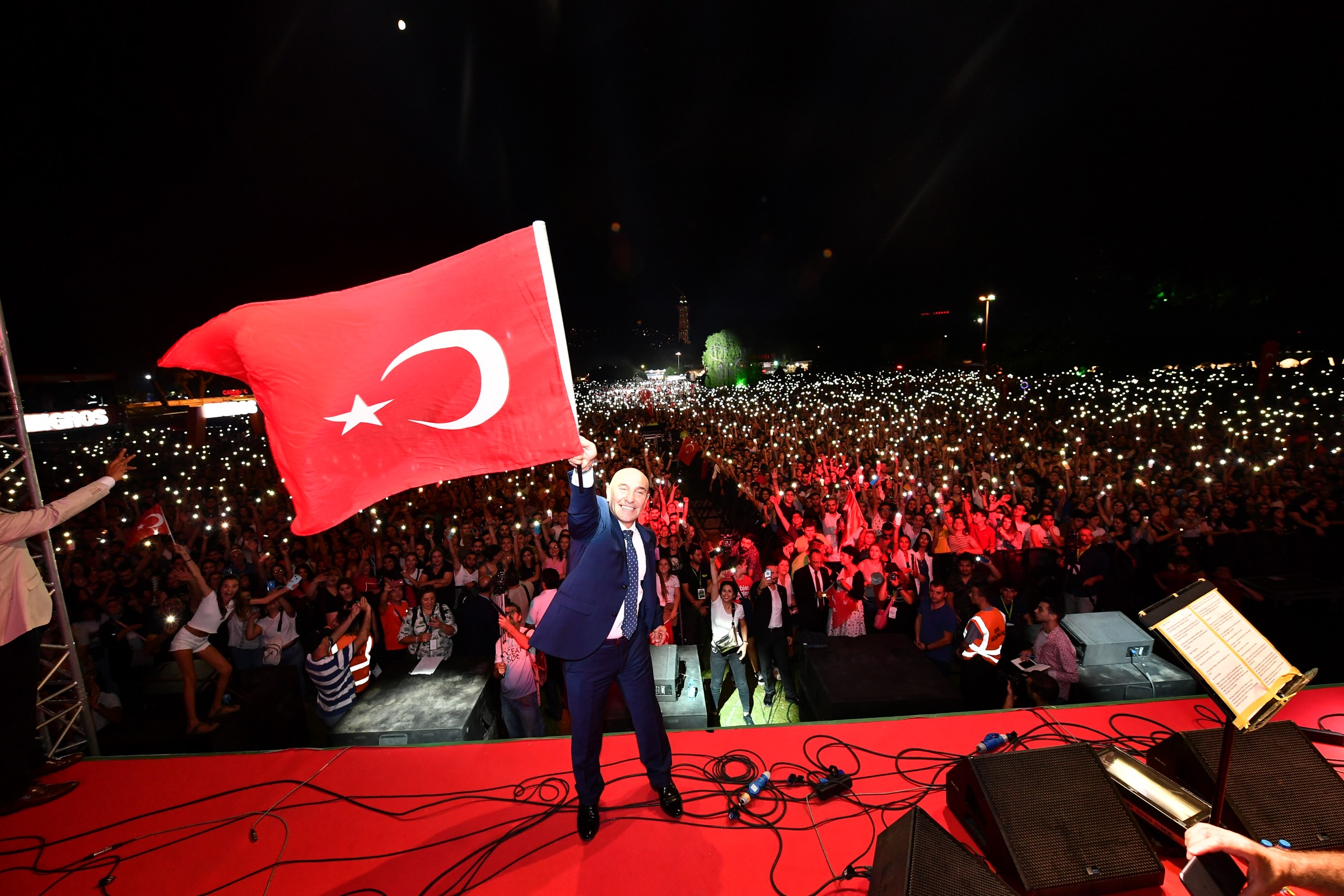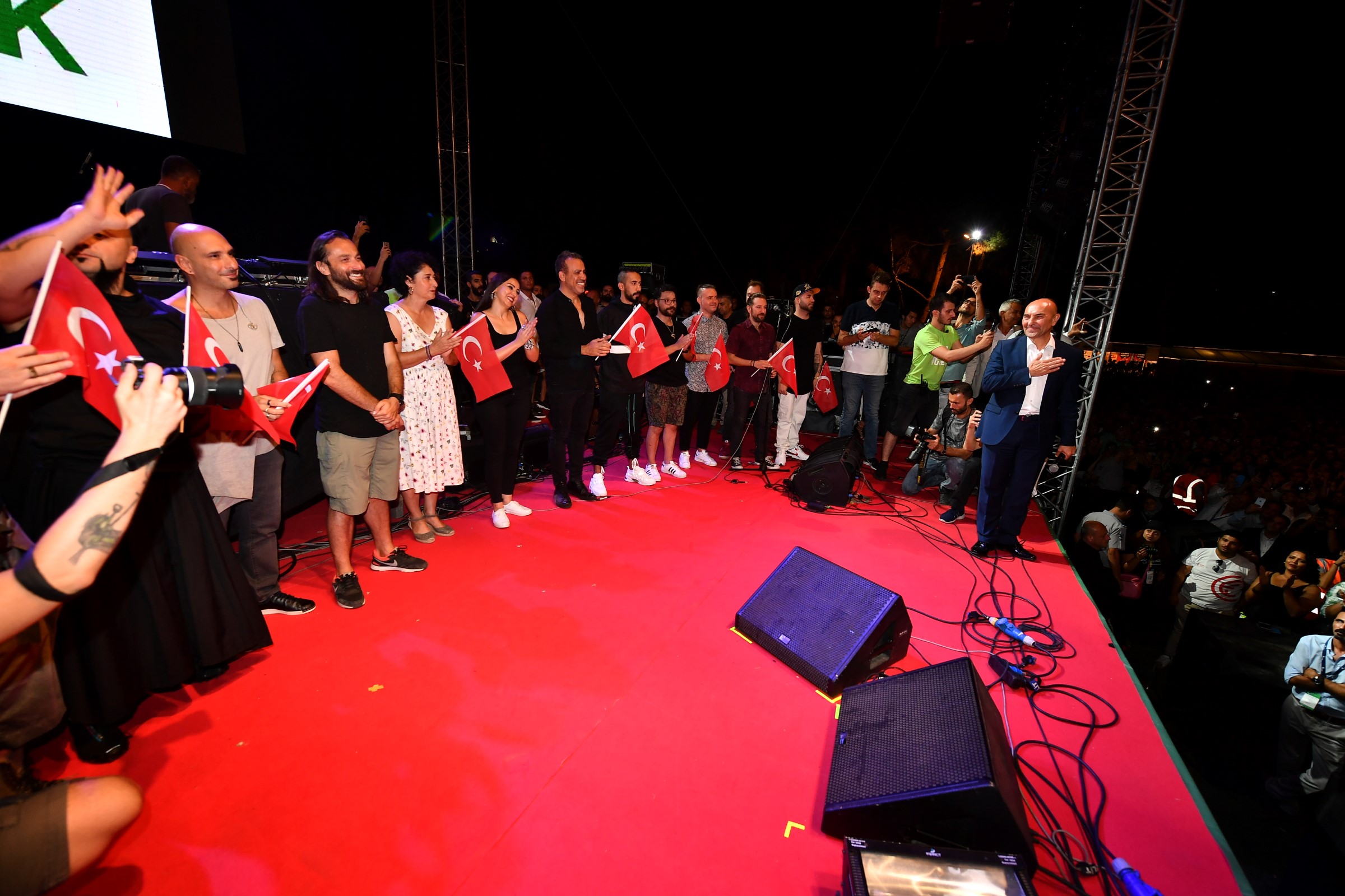 Başkan Soyer, konserde yangın söndürme çalışmalarında emeği geçen belediye ekiplerini de unutmadı. İzmir Büyükşehir Belediyesi itfaiye ekipleri, sosyal hizmet birimlerinden çalışanlar sahneye davet edildi. İzleyenler de belediye ekiplerini, 'İzmir sizinle gurur duyuyor' sloganlarıyla karşıladı. Başkan Tunç Soyer duygularını, “Bu tablo İzmir’e bayram yaşattı” sözleriyle ifade etti.