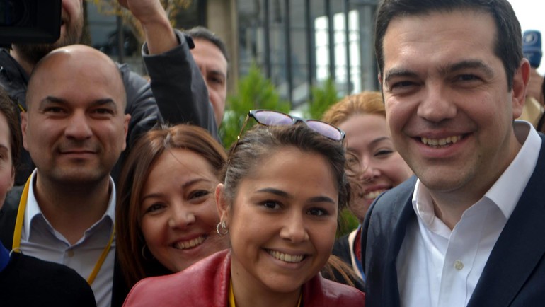 Ofise girmeden önce kadın basın mensuplarının 8 Mart Dünya Kadınlar Günü’nü kutladı. İki başbakan kadın gazetecilere kırmızı gül verdi. Başbakan Davutoğlu, fotoğrafını çeken Ticaret Gazetesi’nden Ümmiye Çavdar’a, "Bugün izin verirseniz biz sizin fotoğrafınızı çekelim" dedi ve fotoğraf makinesini alarak Çipras’la kadın gazetecilerin fotoğrafını çekti. Davutoğlu ardından makineyi Çipras’a vererek kadın gazetecilerle fotoğrafını çekmesini istedi. Çipras da Başbakan Davutoğlu’nu kadın gazetecilerle birlikte görüntüledi. İki başbakan ofisin merdivenlerinde üç dakika sohbet etti. Başbakan Davutoğlu, Çipras’a eliyle denizi işaret etti ve iki başbakan arasında bol gülümsemeli samimi bir sohbet gerçekleşti. Kravat takmayan Çipras’ın bu alışkanlığını İzmir ziyaretinde de sürdürürken beraberindeki bakanların da kravat takmaması dikkat çekti.