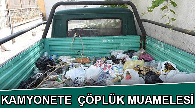 İZMİR'in Basmane semti oteller bölgesinde çöp kutusu bulunmayan 1298 Sokak'ta kullanılmayan eski bir kamyonet, çöp tenekesi işlevi görüyor.