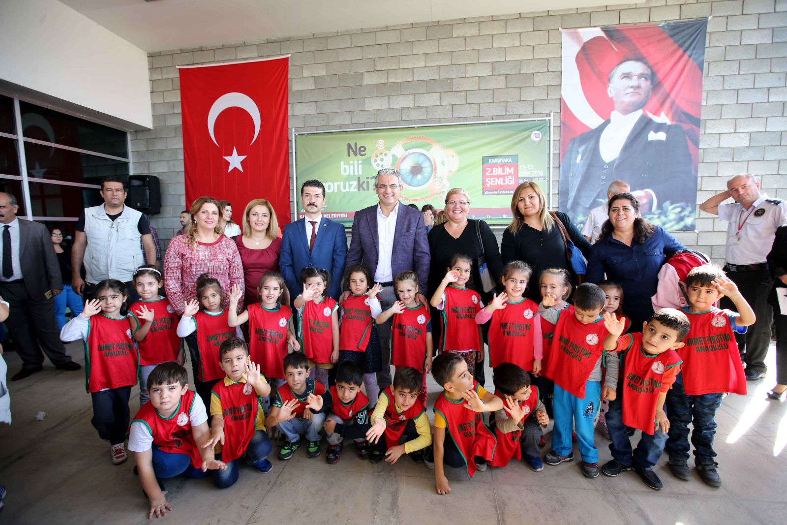 GÜNLÜK YAŞAM VE BİLİMKarşıyaka Belediyesi ile Bahçeşehir Koleji tarafından ortaklaşa düzenlenen ve TÜBİTAK tarafından desteklenen Karşıyaka Bilim Şenliği; Mavişehir’deki Bilim Müzesi’nde törenle başladı. Törene, Karşıyaka Belediye Başkanı Hüseyin Mutlu Akpınar, CHP Karşıyaka İlçe Başkanı Uğur Yıldırım, Afyon, Ege, Dokuz Eylül, Hacettepe, Çukurova, İstanbul Aydın, Bolu İzzet Baysal üniversiteleri ile ODTÜ’den akademisyenler, Bahçeşehir Koleji Okul Müdürü Zeyhep Hülagü, sivil toplum kuruluşlarının temsilcileri ve anaokulu öğrencileri katıldı.