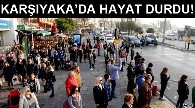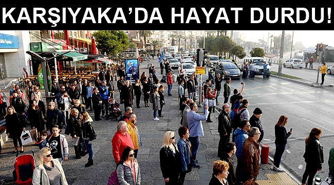 Saatler 09.05’i gösterdiğinde ise Karşıyaka’da hayat durdu. Hem tören alanındakiler hem balkonlardaki vatandaşlar hem de cadde ve sokaklardaki Karşıyakalılar, Büyük Önder Atatürk’ün aramızdan ayrıldığı anda saygı duruşuna geçti. Siren ve korna sesleri ilçenin dört köşesinde yankılanırken, duygu dolu anlar da yaşandı. 83 yaşındaki Saime Alçıtepe, Foça’dan getirdiği kasımpatıları Atatürk heykeline bıraktı.