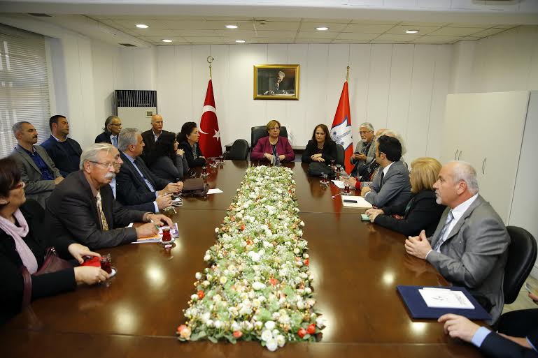 İzmir Kent Konseyleri Birliği, Konak Belediye Başkanı Sema Pekdaş'ı makamında ziyaret etti. Kent kimliği ve kent konseylerinin işlevlerinin görüşüldüğü buluşmaya Buca, Gaziemir, Karabağlar, Konak, Tire, Güzelbahçe, Foça, Narlıdere, Selçuk, Aliağa, Bayraklı, Çeşme, Seferihisar, Urla ve Karşıyaka Kent Konseylerinin meclis ve komisyon başkanları ile yönetim kurulu üyeleri katıldı.MARKA KENT SÖZÜ TERK EDİLİYORİzmir Kent Konseyleri Birliği’ni Konak’ta misafir etmekten dolayı duydukları memnuniyeti dile getiren Başkan Pekdaş, kent konseylerinin önemine vurgu yaptı. Kent yaşamında olduğu kadar yönetiminde ve örgütlenmesinde de insanın ön plana alındığı, mahalle kültürünün önemsendiği yaklaşımların olması gerektiğini dile getiren Pekdaş, kent konseylerinin bu anlamda birer kent örgütlenmesi olduğunu belirterek, "Kent konseyleri, çok kurumsal yapılar değil, kent örgütlemesidir. Kent konseylerini kent örgütlenmesine dönüştürmek lazım.Artık dünyada marka kentler sözü terk ediliyor. Çünkü her şey piyasa üzerinden, kar zarar ilişkisi üzerinden konuşulduğunda insan unutuluyor. İnsanı öne koyan yaklaşımlarla kentler tanımlanmalıdır, deniyor. Kentlerin ruhunu ve kimliğini yakalamak gerekiyor" diye konuştu.