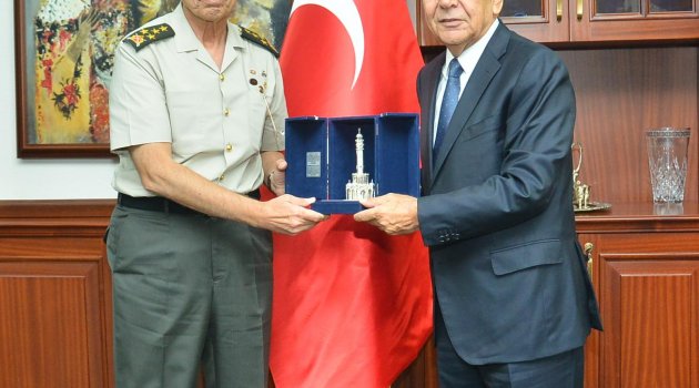 Yüksek Askeri Şura (YAŞ) kararları çerçevesinde Jandarma Genel Komutanlığı görevine atanan Ege Ordusu ve Garnizon Komutanı Orgeneral Galip Mendi, İzmir Büyükşehir Belediye Başkanı Aziz Kocaoğlu’na veda ziyaretinde bulundu. İzmir’de olmaktan çok büyük bir onur duyduğunu dile getiren Orgeneral Mendi, “Kalbim burada. Emeklilikte de İzmir’e yerleşeceğim. Ankara’da hem evimin, hem işyerimin, hem de gönlümün kapısı sizlere açık” dedi.Başkan Aziz Kocaoğlu ise Ege Ordusu Komutanı olarak İzmir’e sağladığı önemli katkılar için teşekkür ettiği Orgeneral Galip Mendi’ye yeni görevinde başarılar dileyerek Saat Kulesi’nin gümüş bir biblosunu hediye etti.