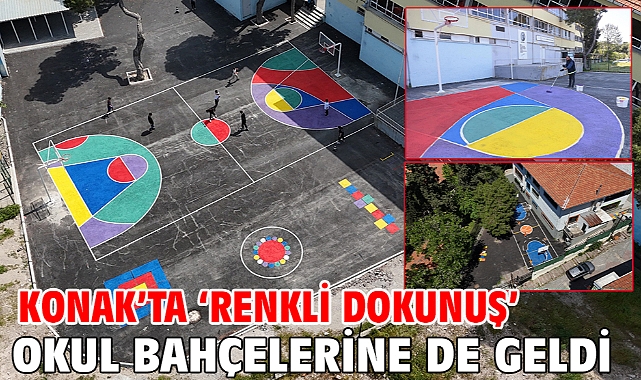 Konak Belediyesi Kentsel Tasarım ve Fen İşleri Müdürlüklerinin ortak çalışmasıyla okullara çıkan sokaklarda hayata geçirilen “Renkli Yol” uygulaması, çerçevesi genişletilerek okul bahçelerine de yayıldı. Çocukların güvenliği ve neşesini artıran uygulama kapsamında Kestelli Şerife Eczacıbaşı Ortaokulu ve Sarıkamış İlkokulu bahçeleri yeniden düzenlenerek yepyeni bir görünüme kavuştu. Her iki okulun da eskimiş ve yıpranmış bahçe zeminleri kazılarak sıfırdan asfalt serildi. Yenilenen asfalt yüzeye, uygun oranlarda basketbol sahaları çizildi. Sarıkamış İlkokulu’nun basketbol sahasının orta alanına resmedilen basketbol topu ise çocuklardan tam not aldı.